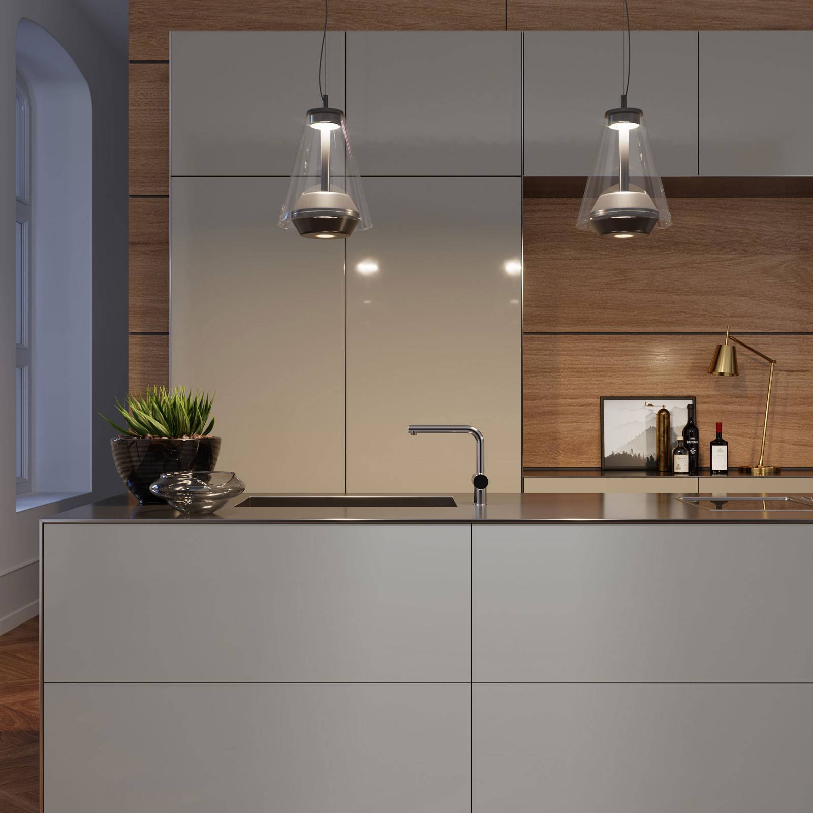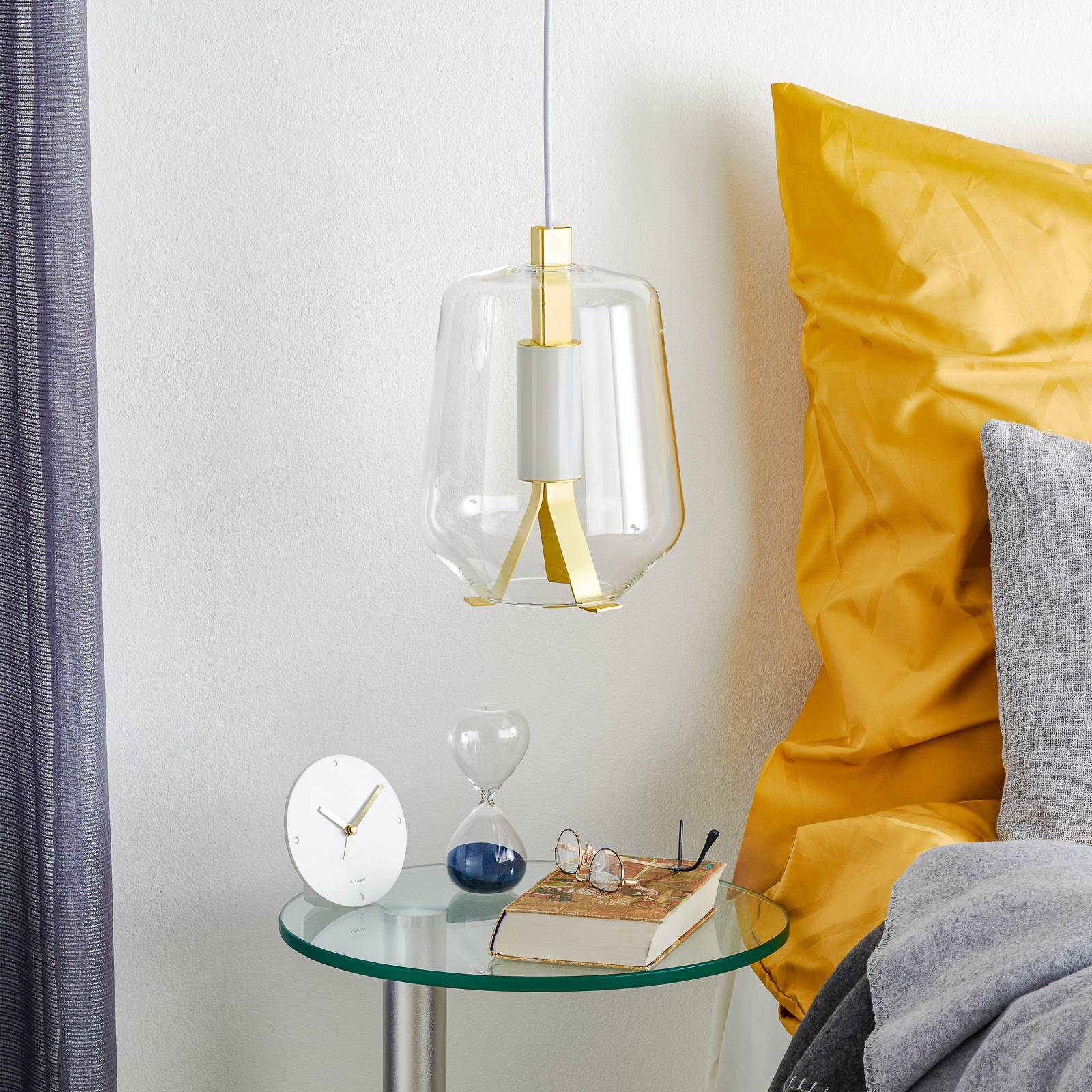Prandina Luisa S1 závěsné světlo 2 700K mosaz/čirá, Obývací pokoj / jídelna, sklo, foukané, 8W, K: 28.5cm