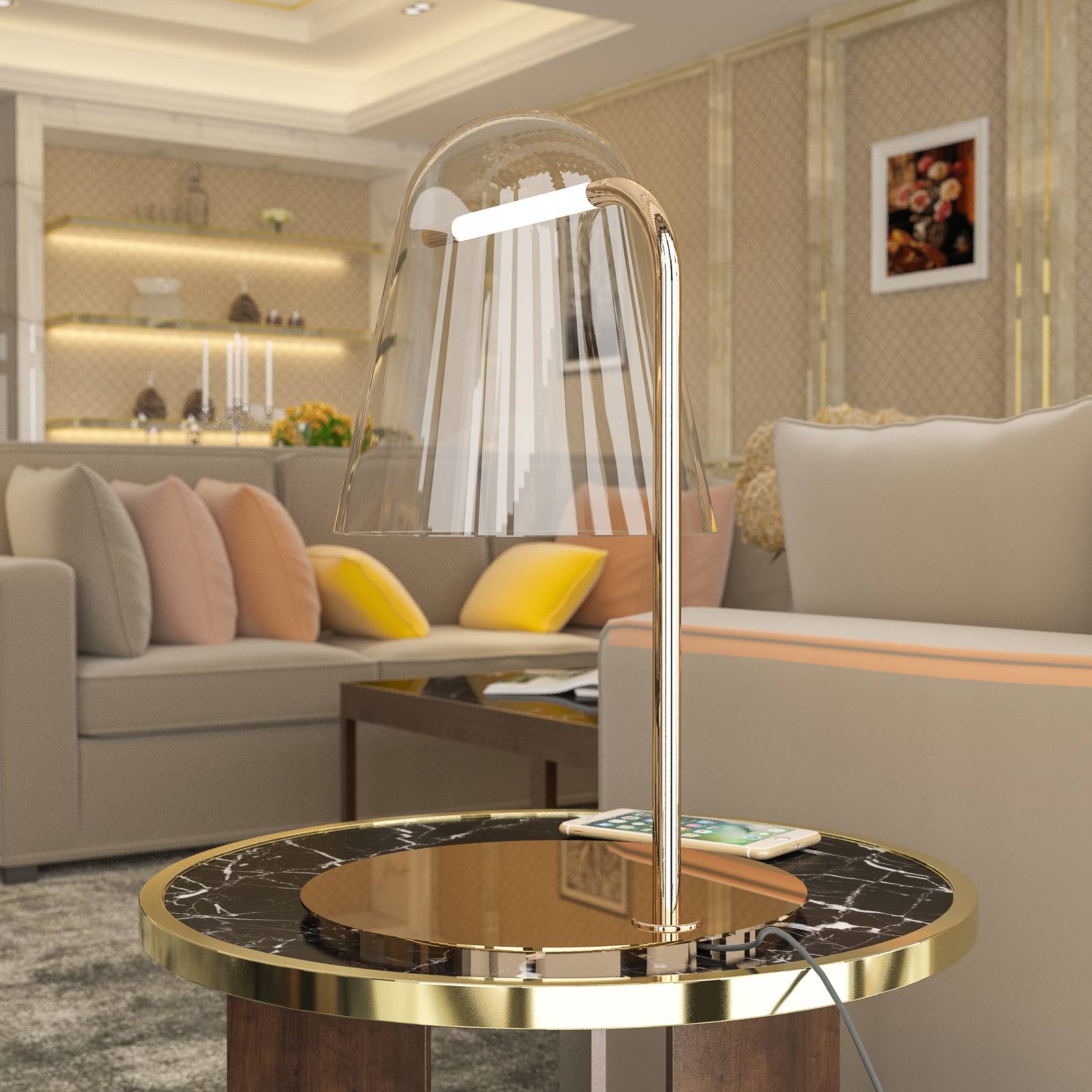 Prandina Sino T3 LED stolní lampa čirá/zlatá, Obývací pokoj / jídelna, křišťálové sklo foukané, kov, 4W, K: 43.5cm