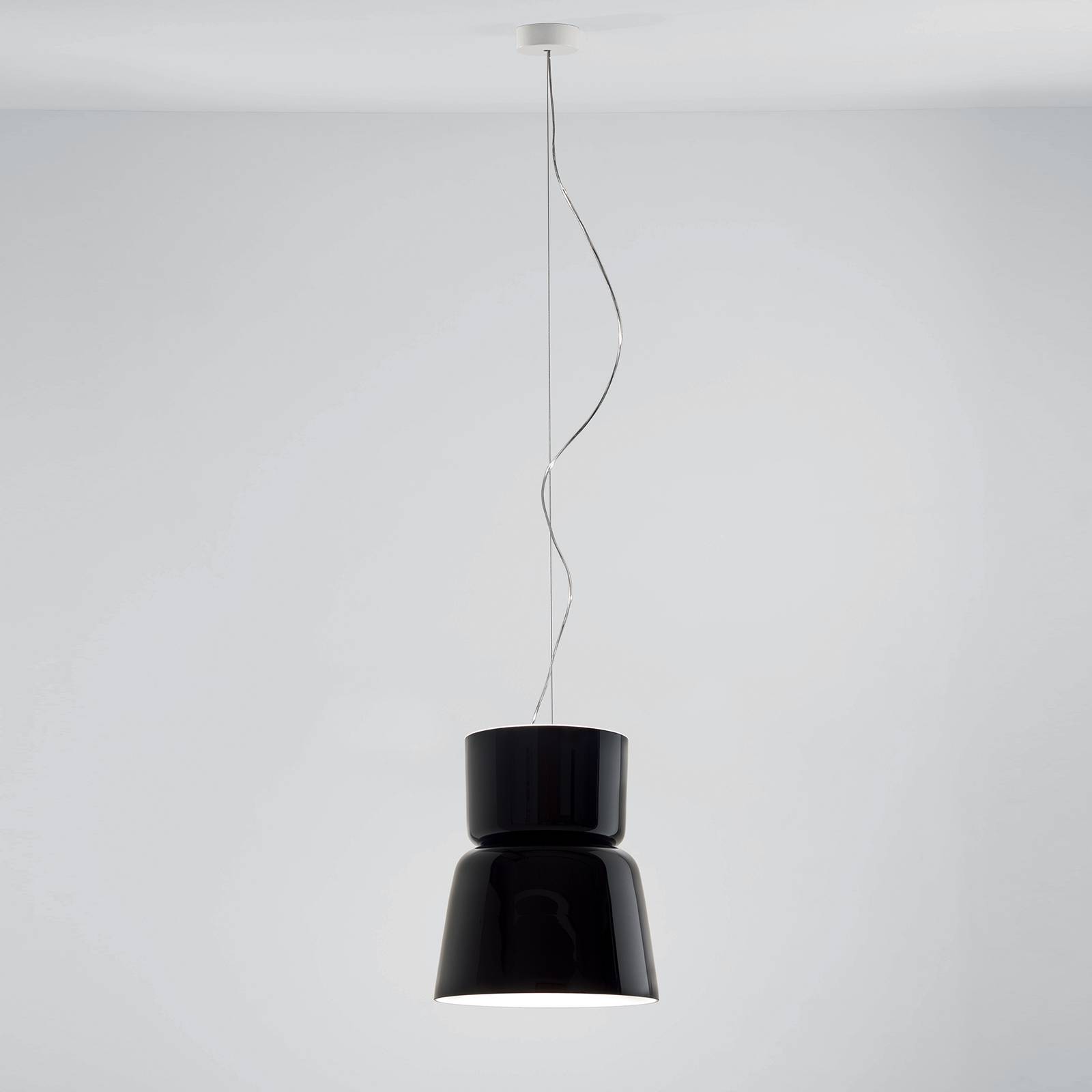 Prandina Bloom S5 závěsné světlo, černá lesklá, Obývací pokoj / jídelna, sklo, foukané, K: 42cm