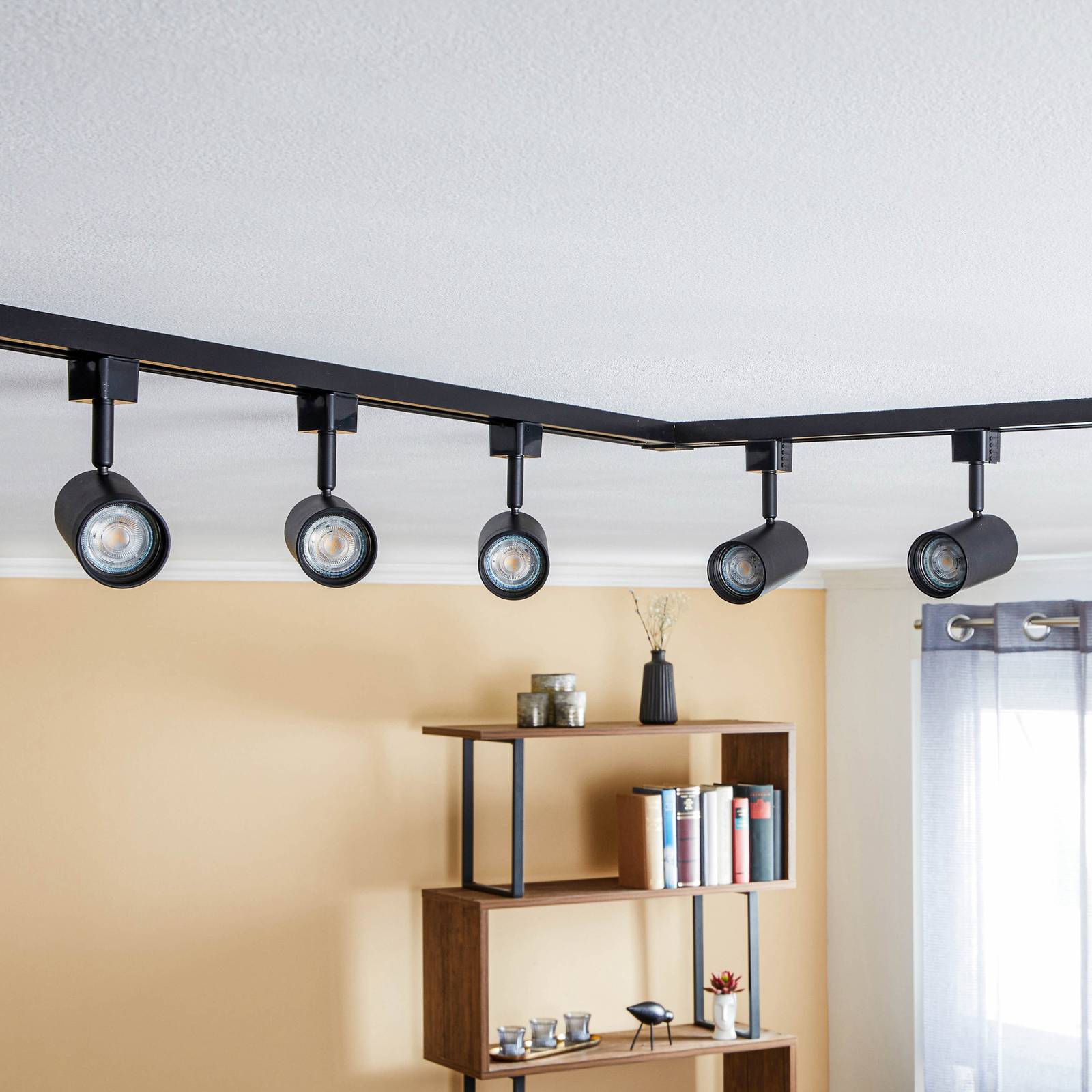 PRIOS Prios Jorell 1okruhový kolejnicový systém 5 světel černá, Obývací pokoj / jídelna, Hliník, železo, plast, GU10, 10W, P: 300 cm, L: 5.5 cm, K: 16cm