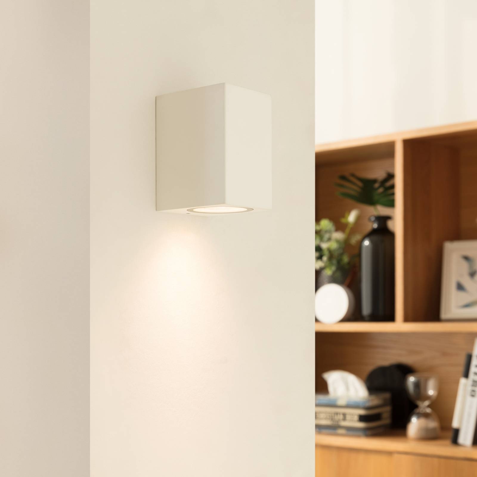 PRIOS Venkovní nástěnné svítidlo Prios Tetje, bílé, hranaté, 10 cm, sada 4 kusů, Hliník, sklo, GU10, 10W, L: 6.8 cm, K: 10cm