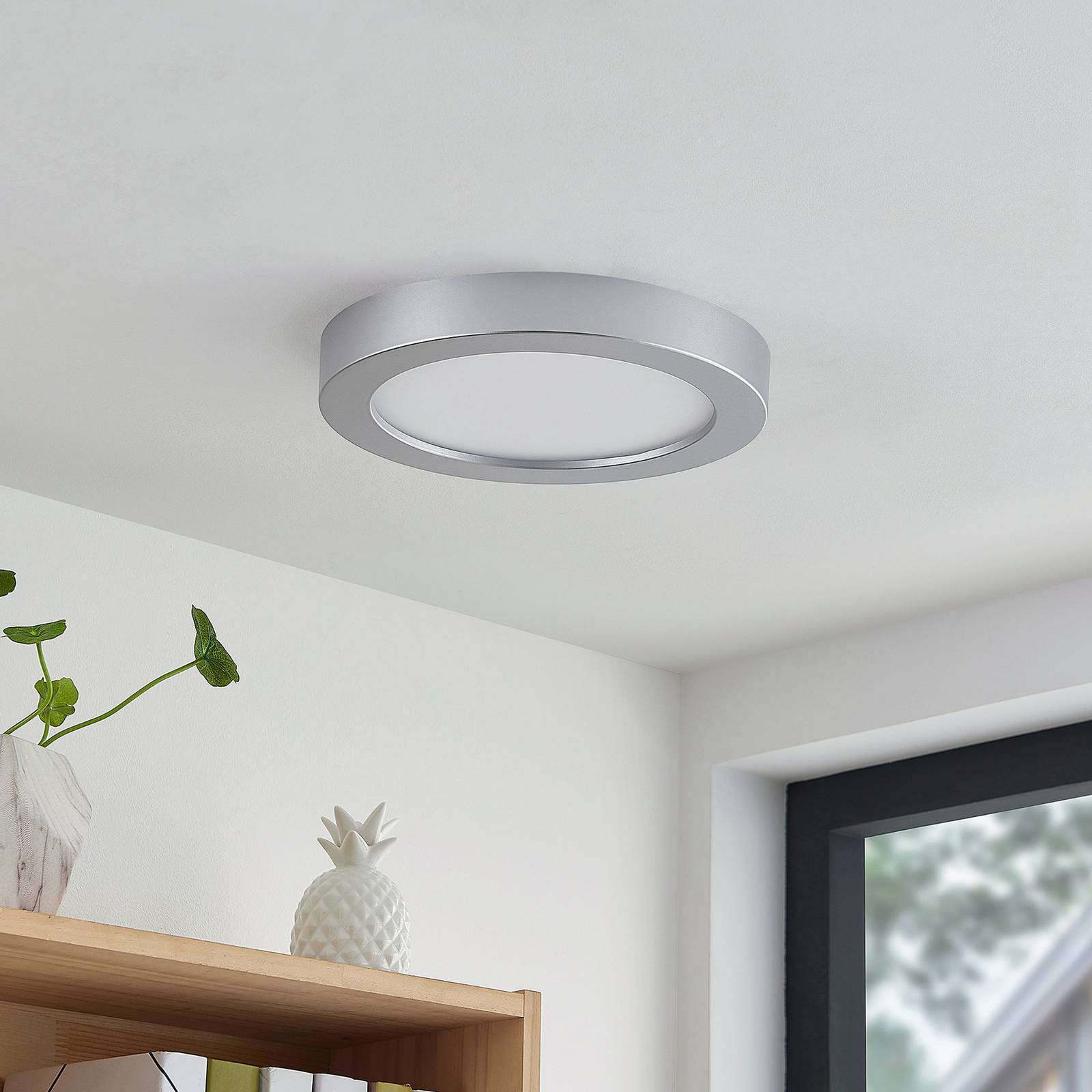 PRIOS Stropní svítidlo Prios LED Edwina, stříbrné, 24, 5 cm, stmívatelné, Koupelna, Polykarbonát, hliník, 24W, K: 3.5cm