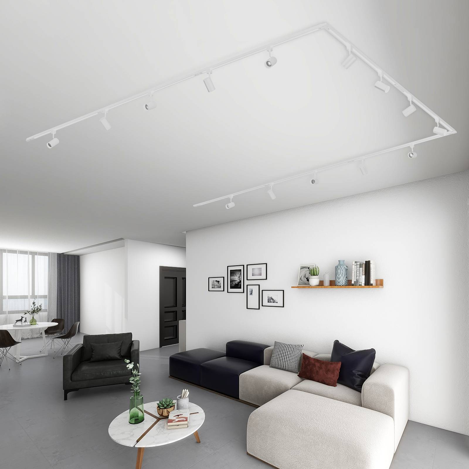 PRIOS Prios Jorell 1-okruhový kolejnicový systém 14-zápustný bílý, Obývací pokoj / jídelna, Hliník, kov, GU10, 10W, P: 800 cm, L: 5.6 cm, K: 15cm