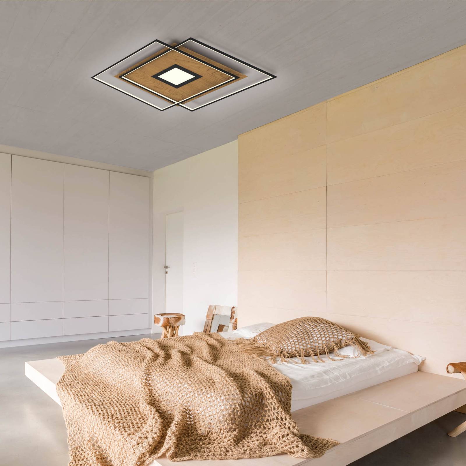 Q-Smart-Home Paul Neuhaus Q-AMIRA LED stropní světlo, dřevo, Obývací pokoj / jídelna, železo, plast, 50W, P: 60 cm, L: 60 cm, K: 7cm
