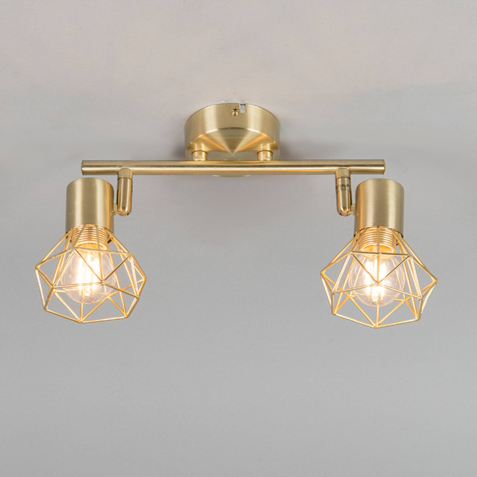 QAZQA Stropní světlo Mosh se 2 klecovými stínidly, mosaz, Obývací pokoj / jídelna, ocel, E14, 40W, P: 34 cm, K: 15cm