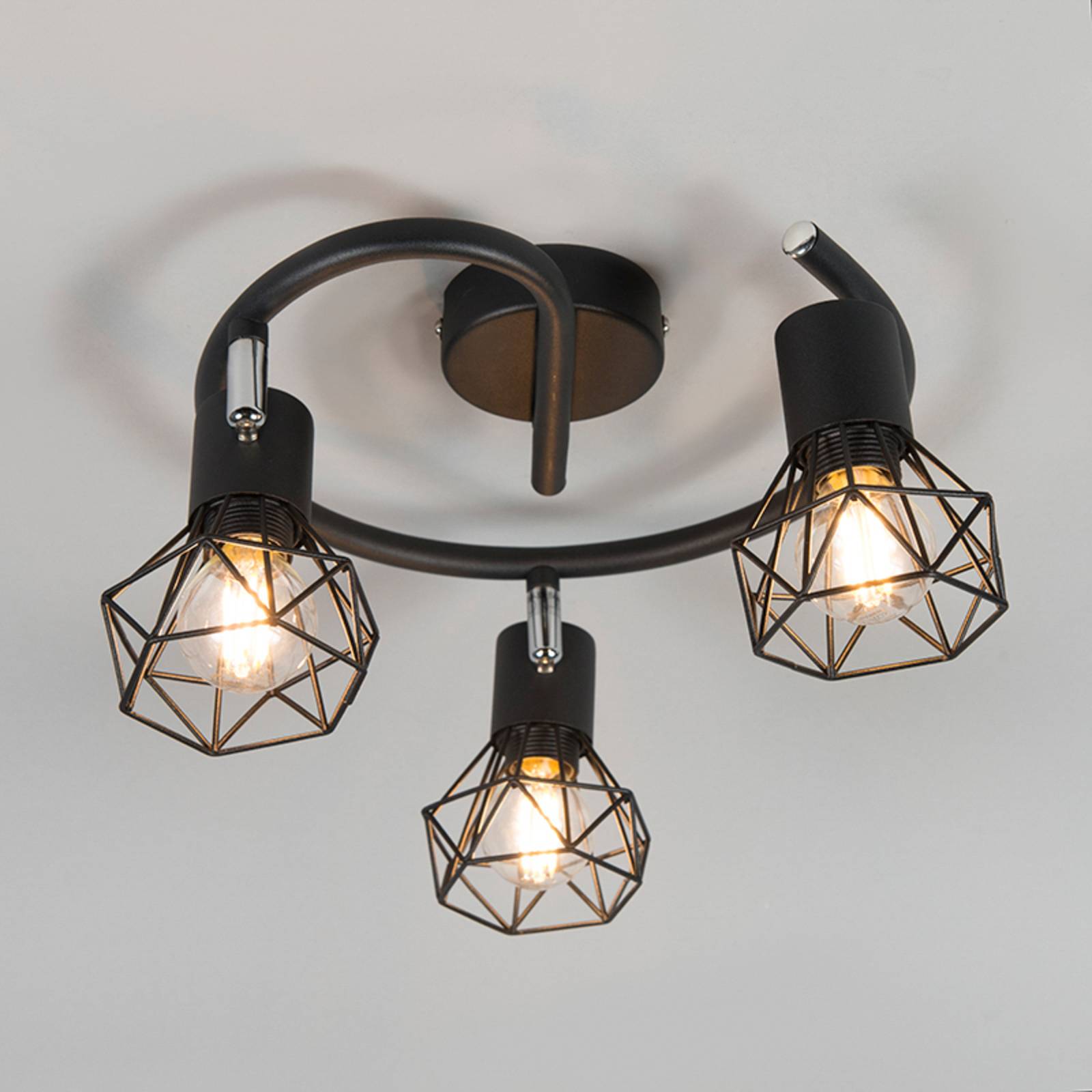 QAZQA Stropní světlo Facil, 3 zdroje, černá, Obývací pokoj / jídelna, ocel, E27, 60W, K: 9cm