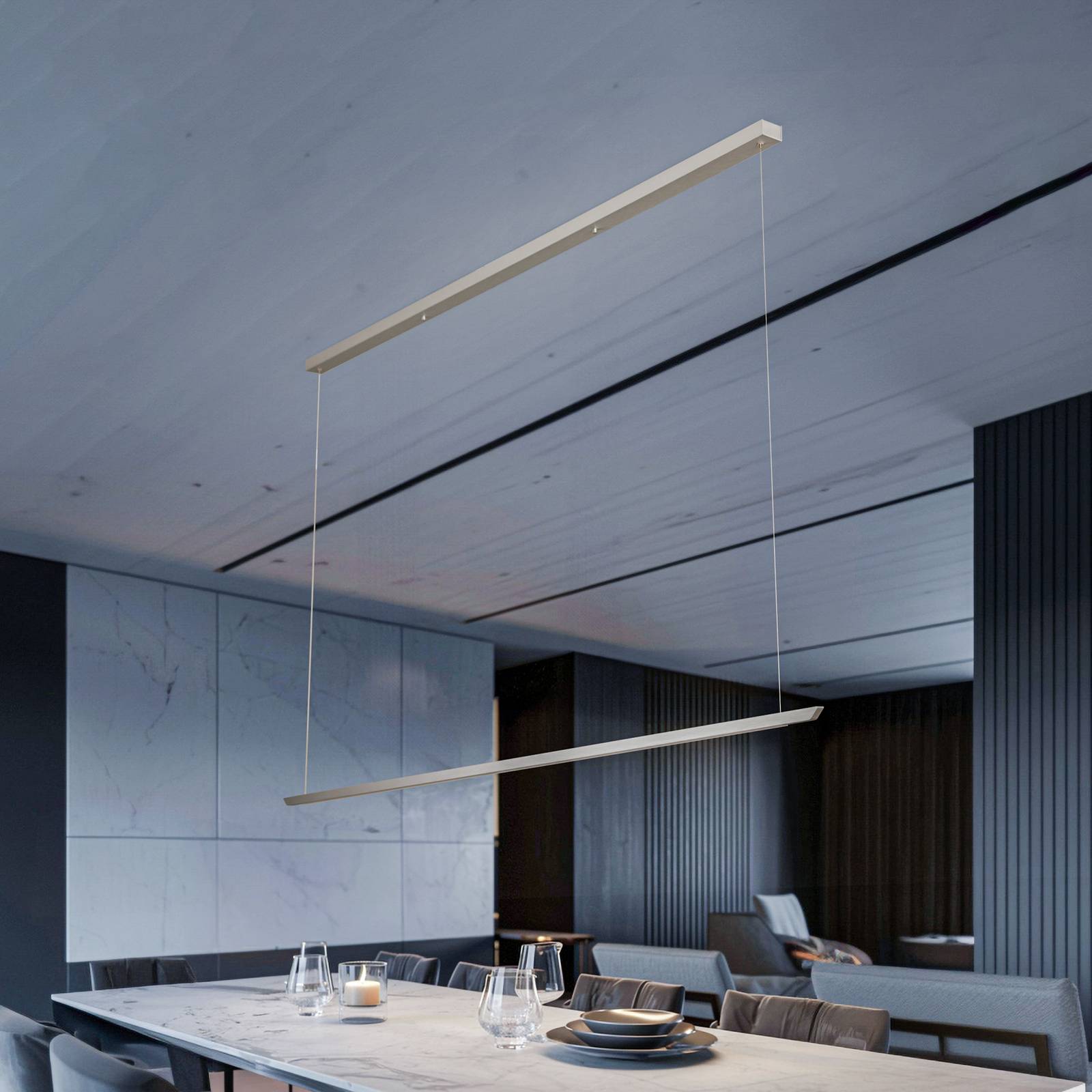 quitani Quitani Niara LED závěsné svítidlo CCT hliník eloxovaný/přírodní, Kuchyň, Hliník, mosaz, akryl, 32W, P: 168 cm, L: 1.8 cm, K: 1.8cm