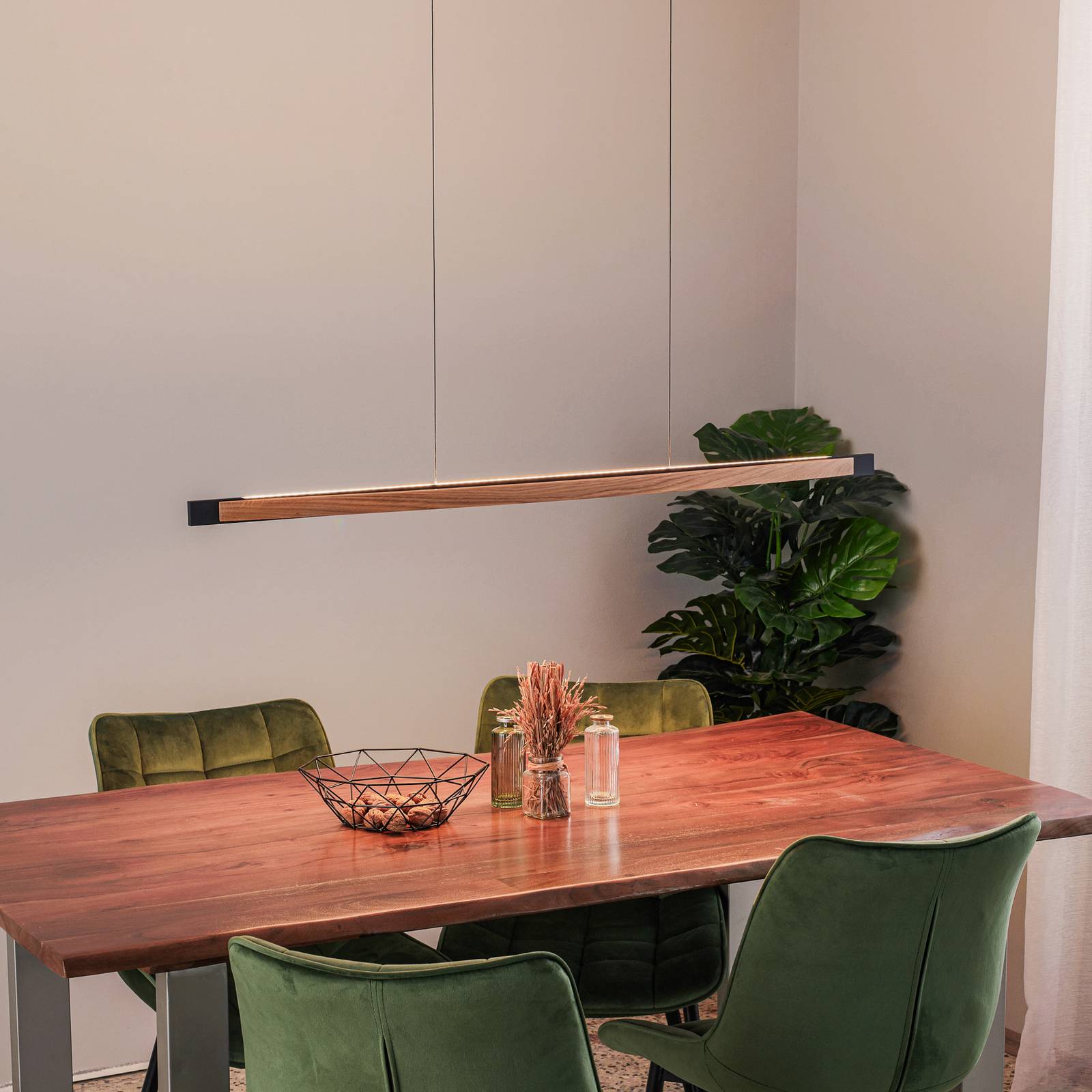 quitani Závěsné svítidlo LED Quitani Kiere, dub/černá, 118 cm, Obývací pokoj / jídelna, dubové dřevo, hliník, ocel, mosaz, 38W, P: 118 cm, L: 16 cm, K: 3.5cm