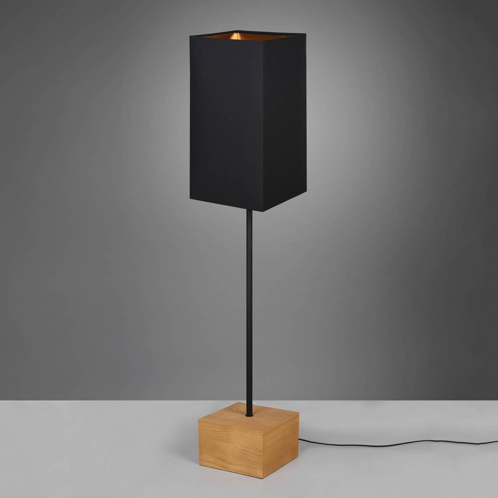 Reality Leuchten Stojací lampa Woody dřevo/textil, kvádr, černá, Obývací pokoj / jídelna, Dřevo, textil (bavlna, polyester), E27, 60W, P: 25 cm, L: 25 cm, K: 150cm