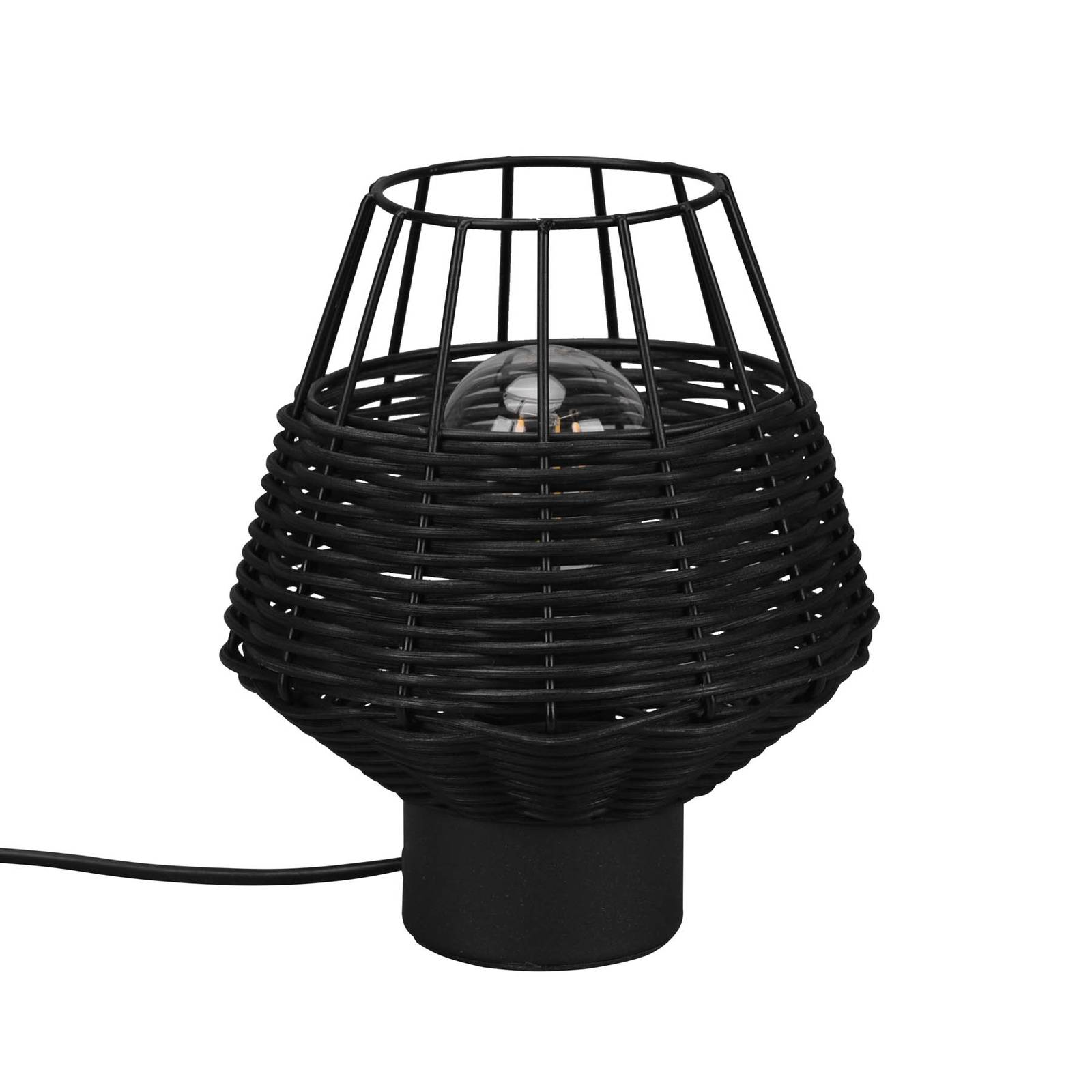 Reality Leuchten Stolní lampa Borka ratan a klec, černá, Obývací pokoj / jídelna, ratan, železo, E27, 40W, K: 20cm