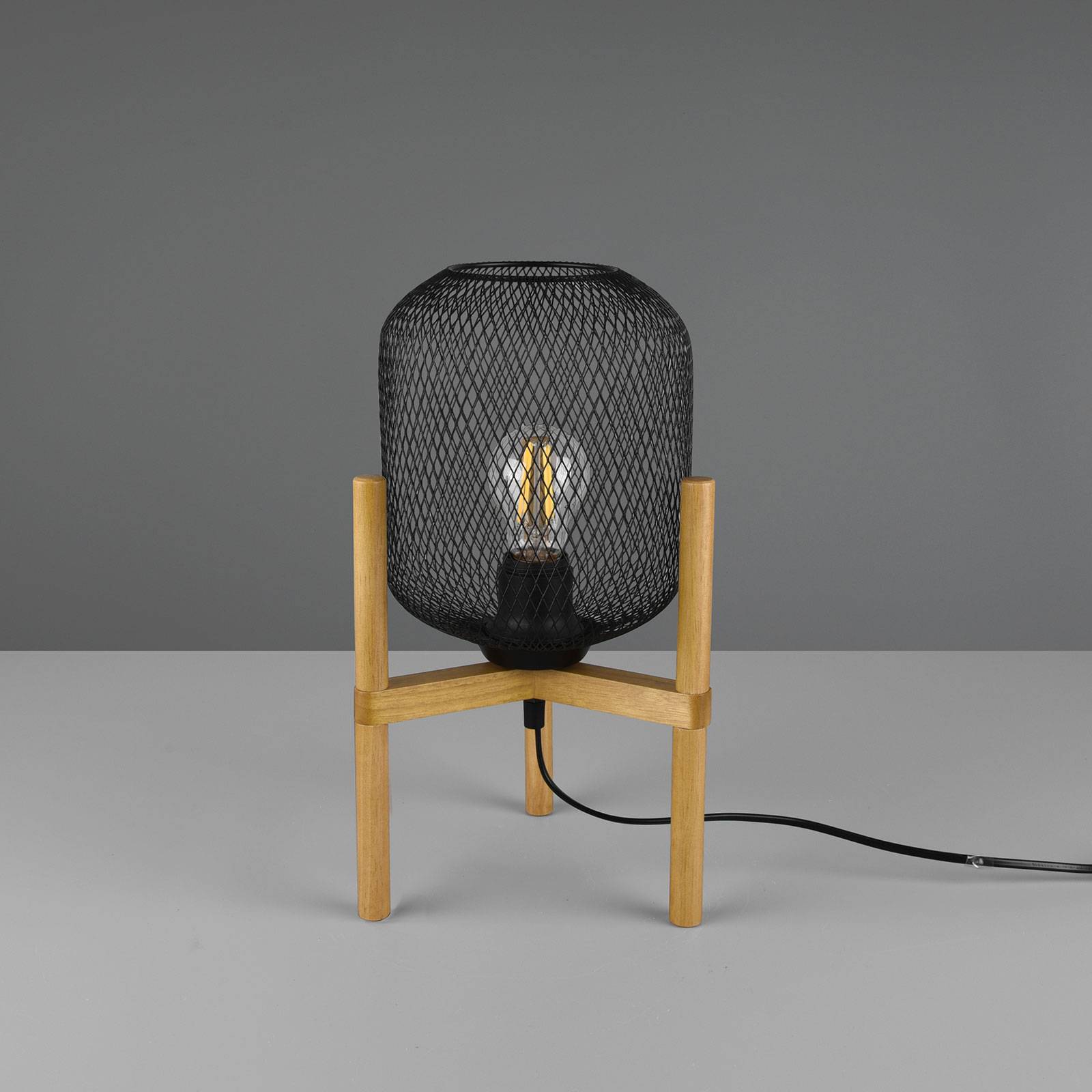 Reality Leuchten Stolní lampa Calimero s třínohým dřevěným stojanem, Obývací pokoj / jídelna, kov, dřevo, E27, 40W, K: 37cm