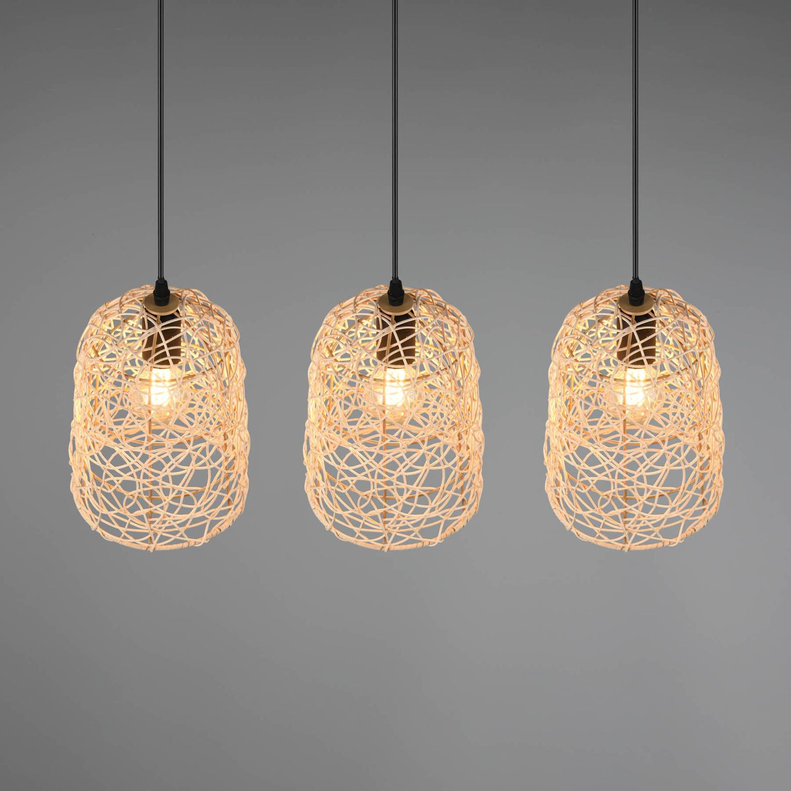 Reality Leuchten Závěsné světlo Lovis z ratanového pletiva 3 zdroje, Obývací pokoj / jídelna, ratan, železo, E27, 40W, P: 76 cm, L: 19 cm