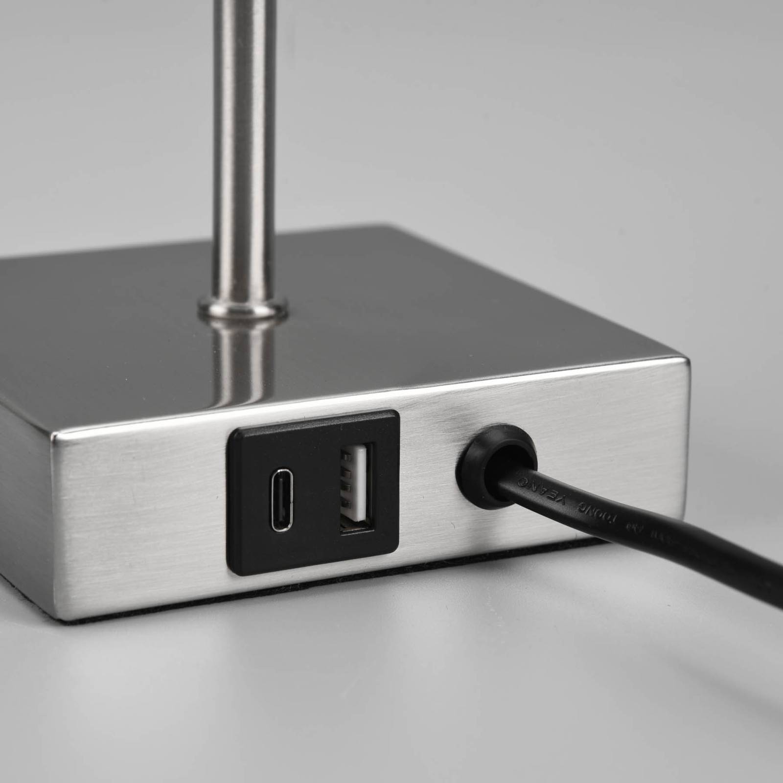 Reality Leuchten Stolní lampa Ole s USB přípojkou, bílá/nikl, Obývací pokoj / jídelna, železo, bavlna, polyester, E14, 25W, P: 10 cm, L: 10 cm, K: 35cm