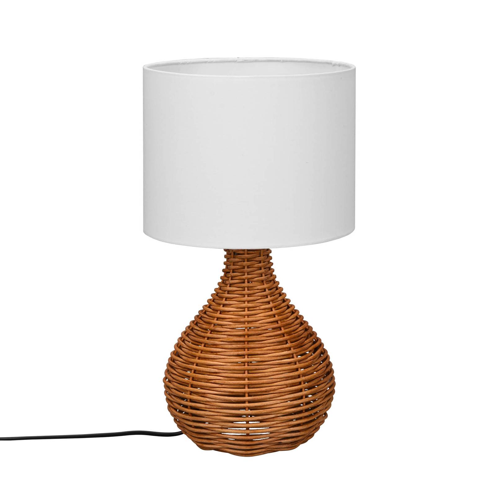 Reality Leuchten Stolní lampa Sprout, ratan a textil, bílá/přírodní, Obývací pokoj / jídelna, ratan, železo, textil (bavlna, polyester), E27, 25W, K: 39cm