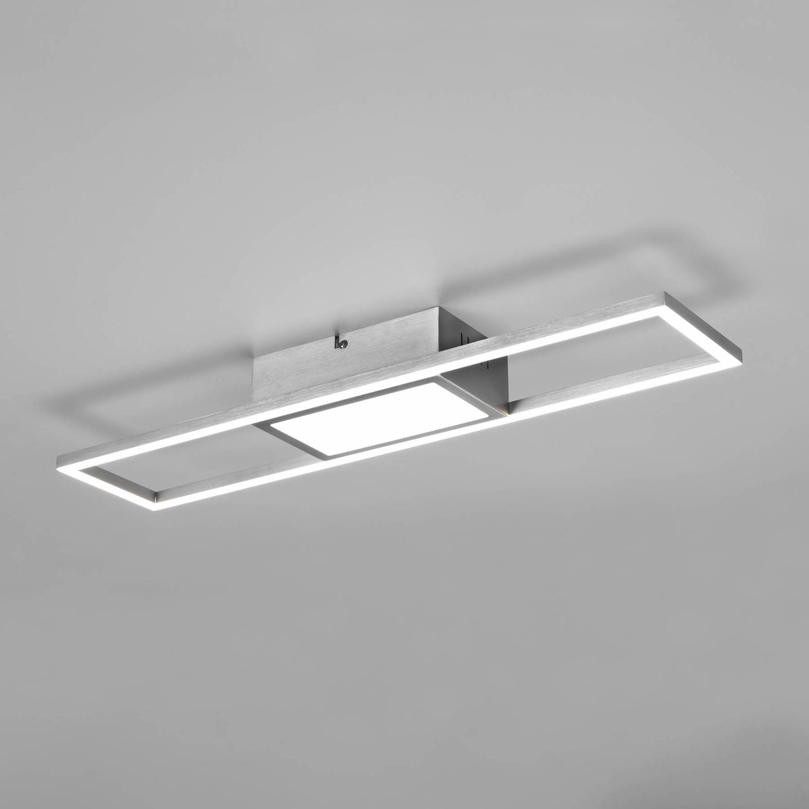 Reality Leuchten LED stropní světlo Rigido dálkový ovladač CCT nikl, Obývací pokoj / jídelna, železo, 22W, P: 60 cm, L: 13 cm, K: 6cm