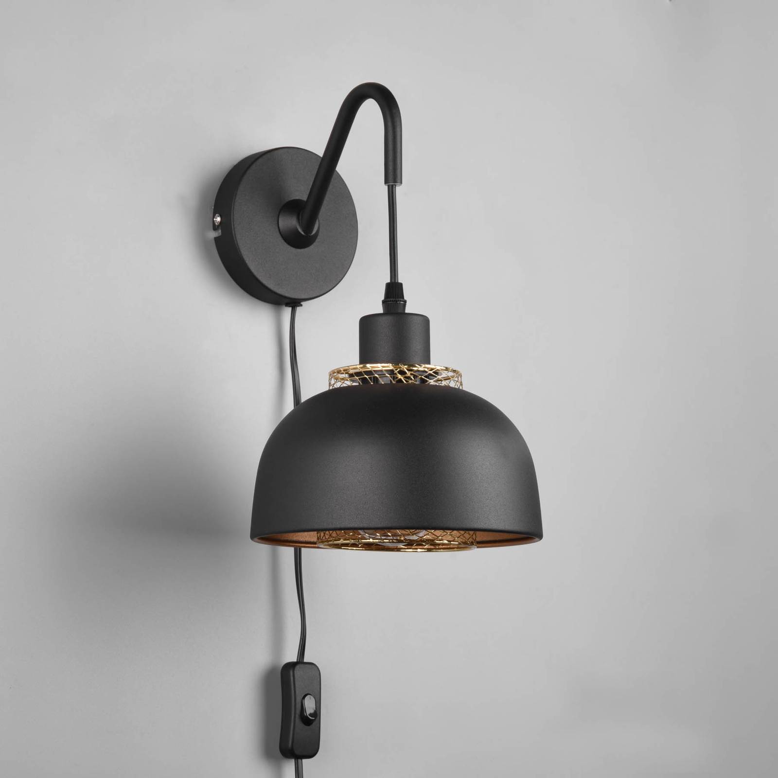 Reality Leuchten Nástěnné světlo Punch spínač zástrčka černá/zlatá, Obývací pokoj / jídelna, železo, E27, 40W, L: 18 cm, K: 30cm