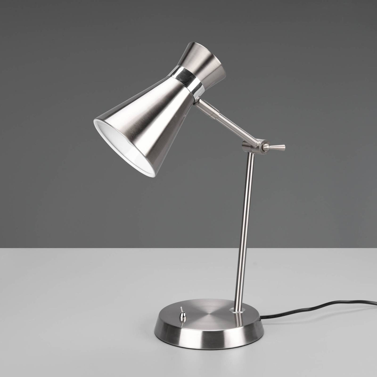 Reality Leuchten Stolní lampa Enzo, jeden zdroj, nikl, Pracovna / kancelář, železo, E27, 10W, L: 16.7 cm, K: 50.1cm