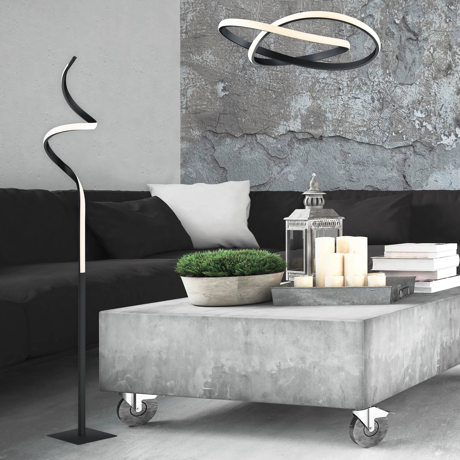 Reality Leuchten Stojací lampa LED Course, matná černá, 3 000 K, výška 145 cm, Obývací pokoj / jídelna, Železo, plast, 11W, K: 145cm