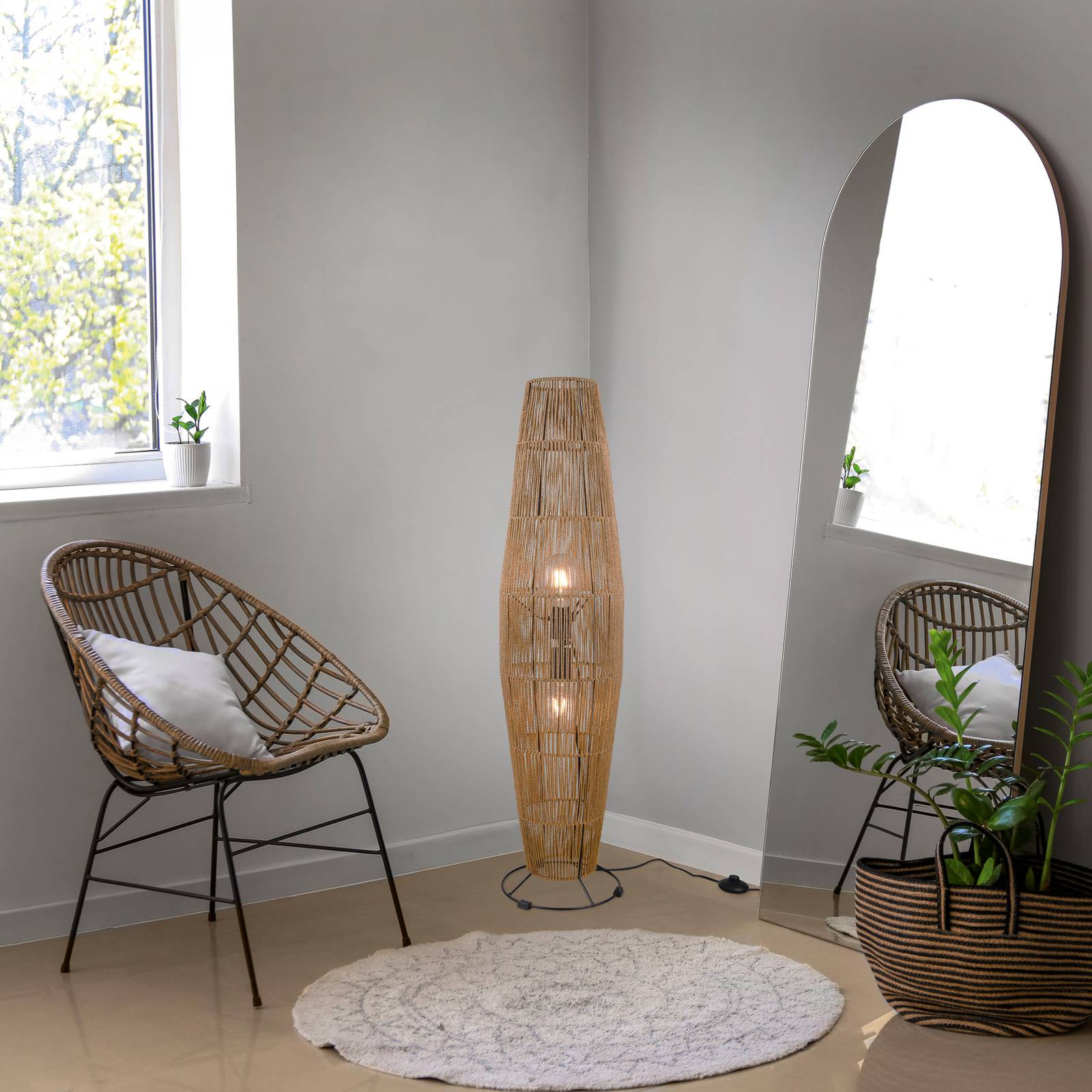 Reality Leuchten Stojací lampa Miki, hnědá, výška 103 cm, papír, Obývací pokoj / jídelna, Papír, kov, E27, 40W, K: 103cm