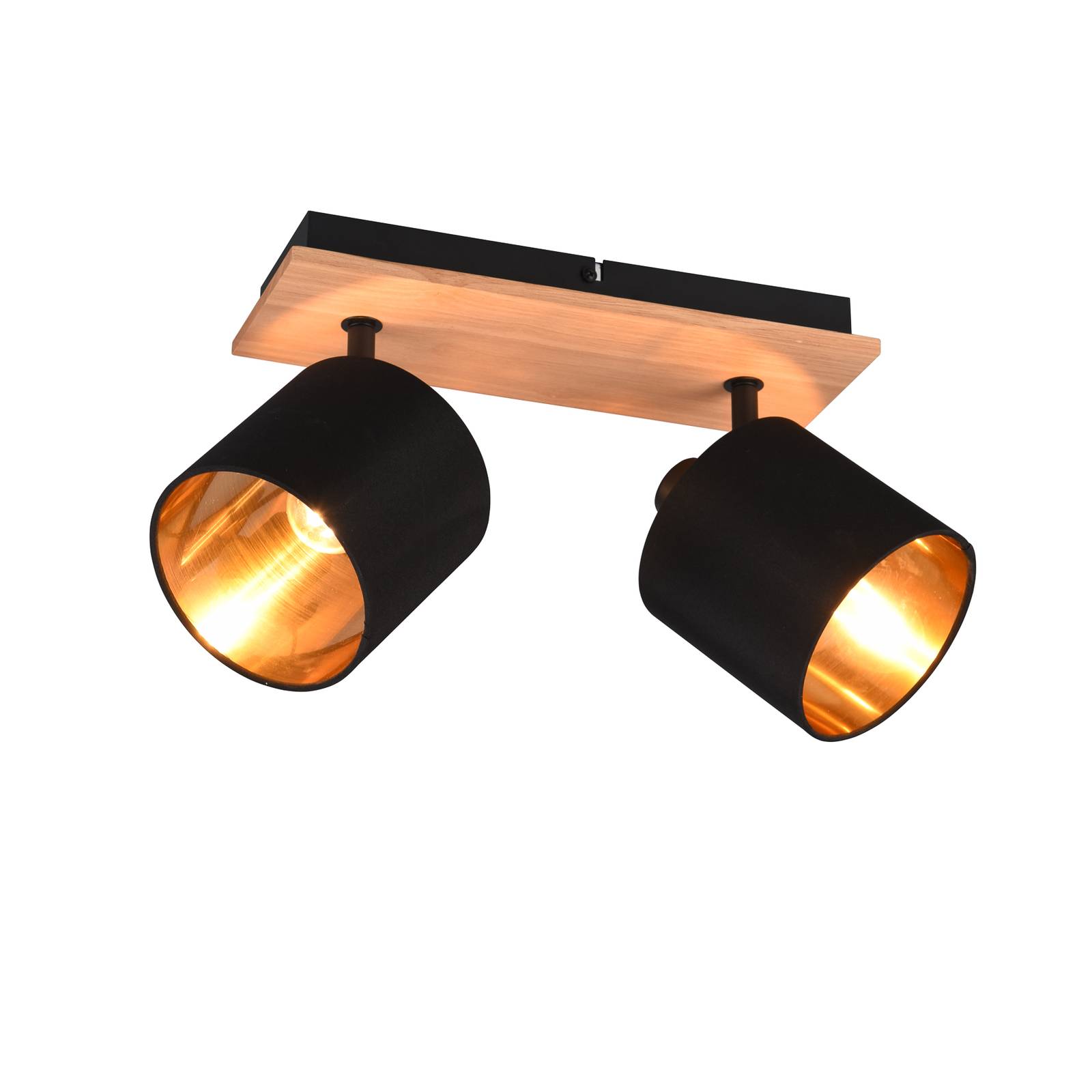 Reality Leuchten Stropní reflektor Tommy, dřevo/černá/zlatá, délka 30 cm, 2 světla., Obývací pokoj / jídelna, Kov, tkanina, E14, 28W, P: 30 cm, L: 12 cm, K: 19cm