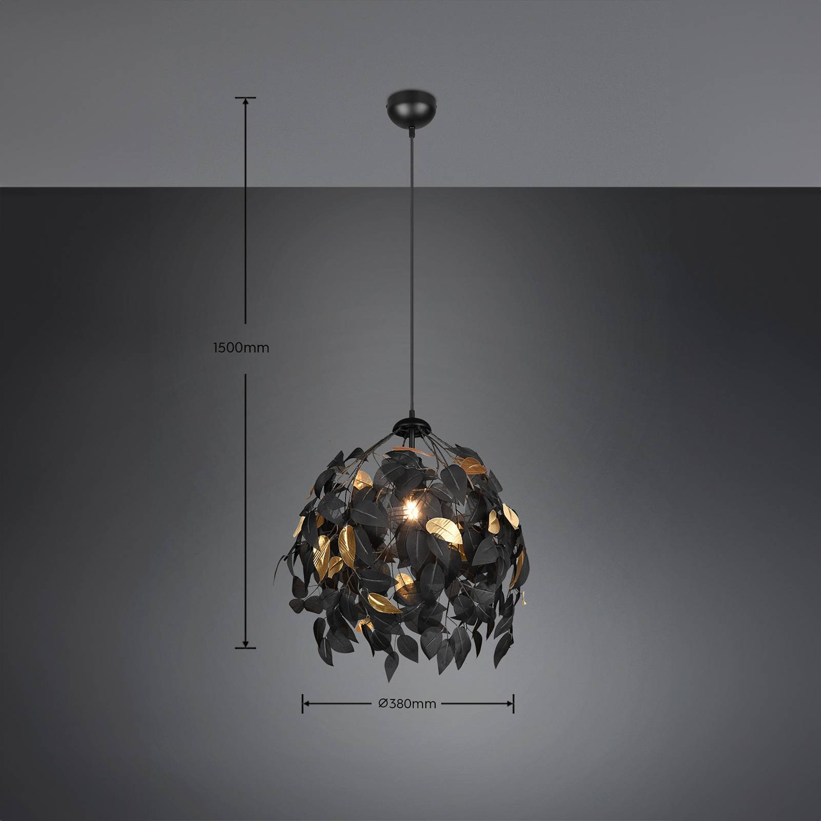 Reality Leuchten Závěsná lampa Leavy, černá/zlatá, Ø 38 cm, plast, Obývací pokoj / jídelna, Plast, kov, E27, 28W
