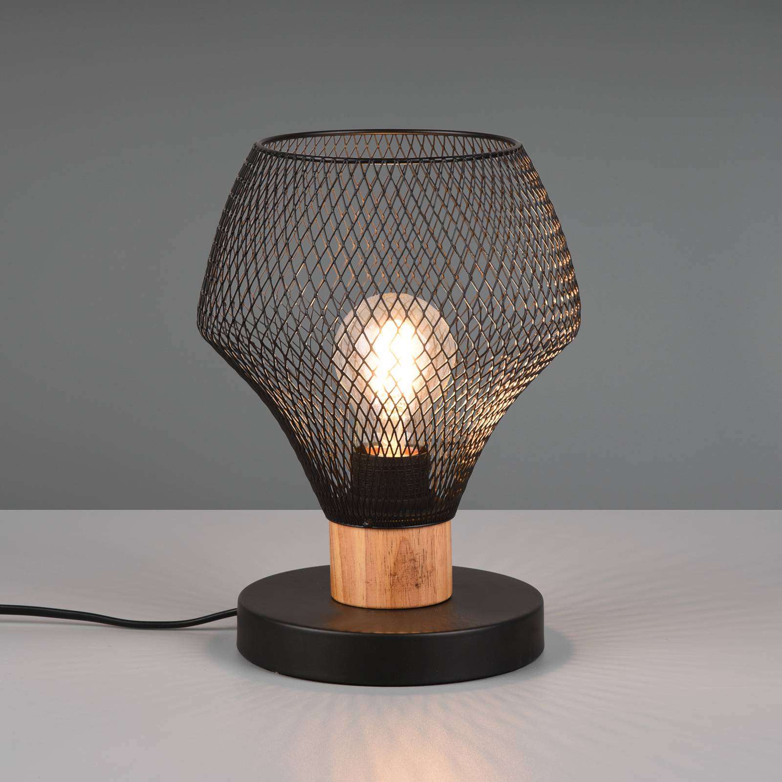 Reality Leuchten Stolní lampa Valeria s mřížovým stínidlem, Obývací pokoj / jídelna, kov, dřevo, E27, 40W, K: 25cm