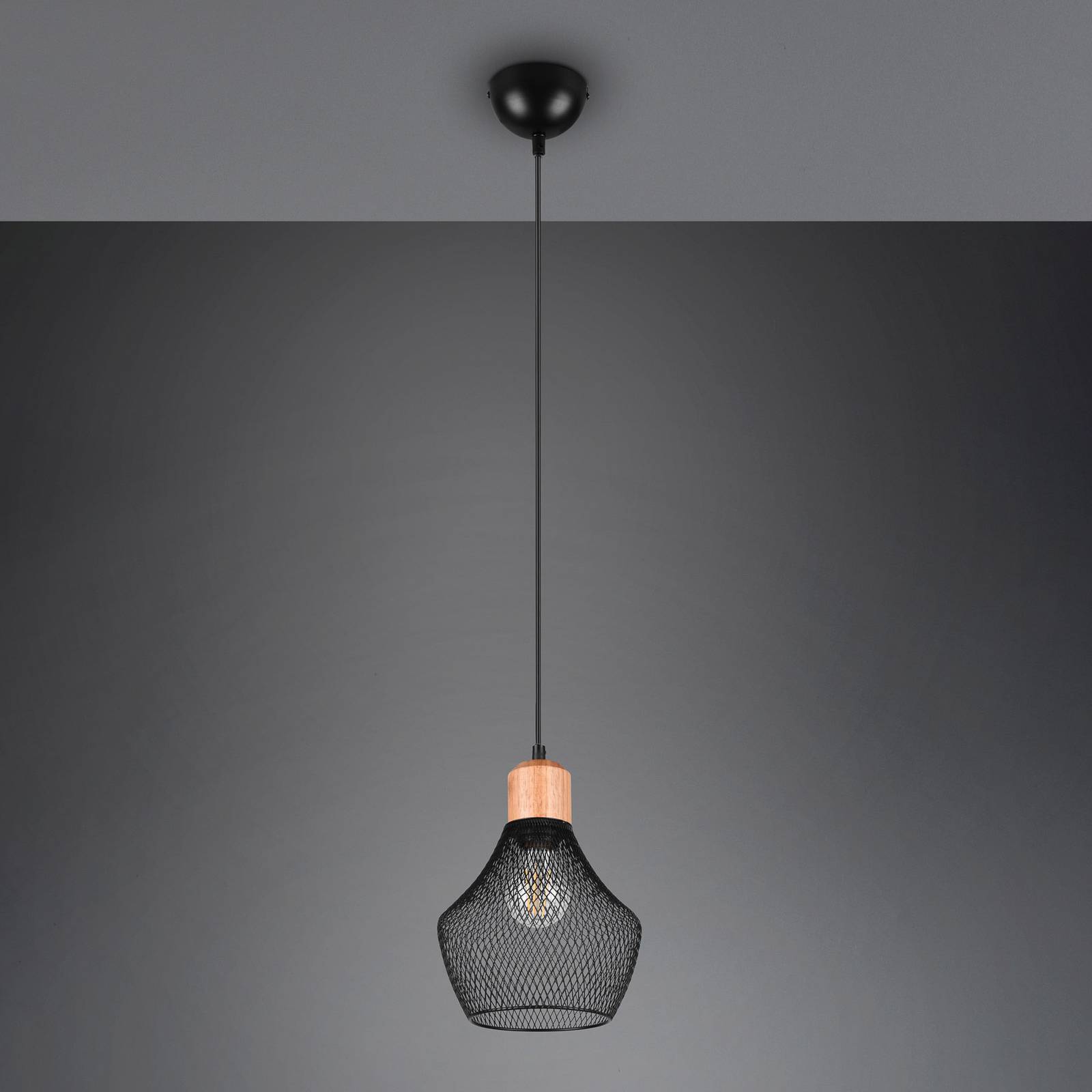 Reality Leuchten Závěsné svítidlo Valeria s mřížkovým stínidlem, Ø 18 cm, Kuchyň, kov, dřevo, E27, 40W, K: 18.5cm