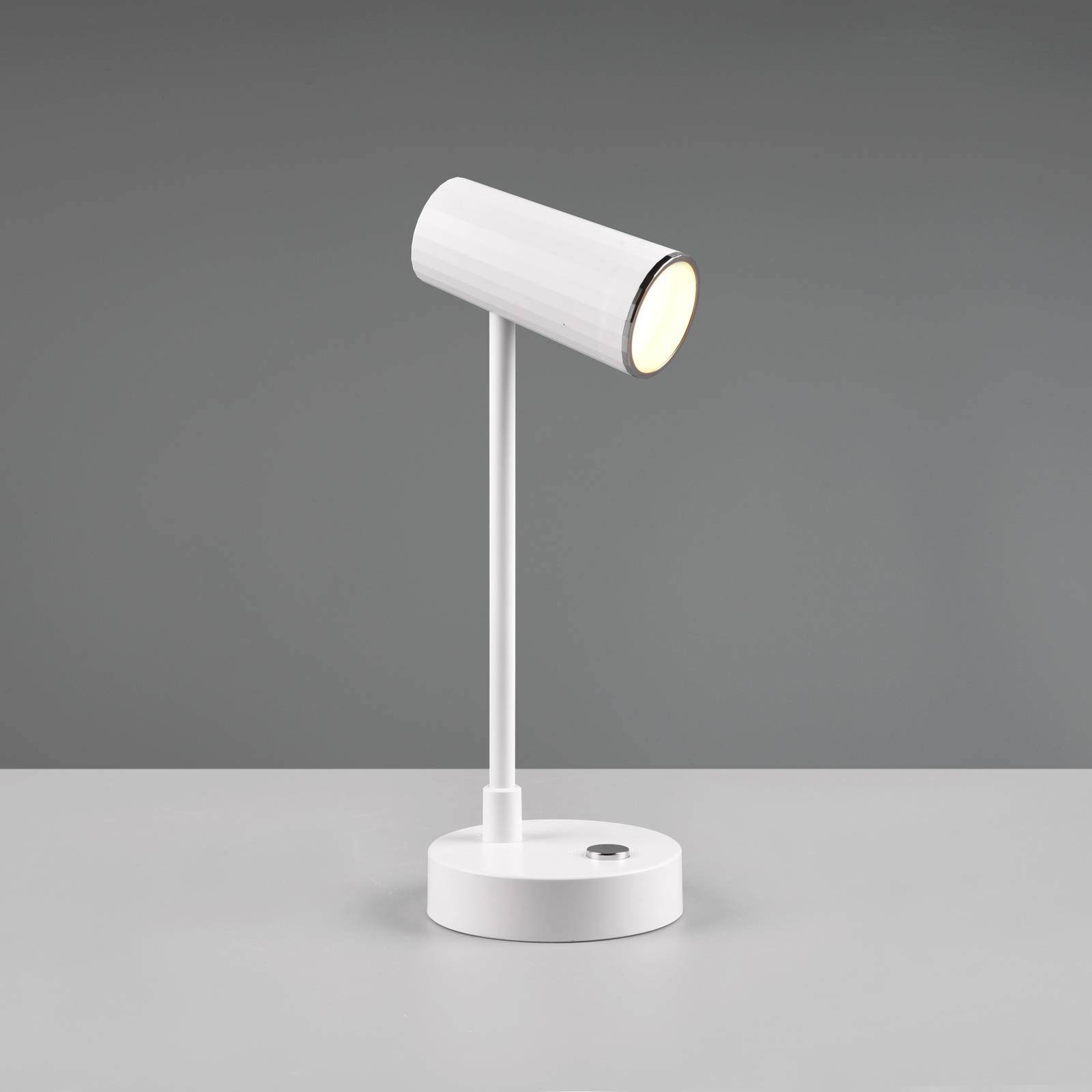 Reality Leuchten Stolní lampa LED Lenny CCT s dobíjecí baterií, bílá, Obývací pokoj / jídelna, kov, 2.5W, L: 10 cm, K: 28cm