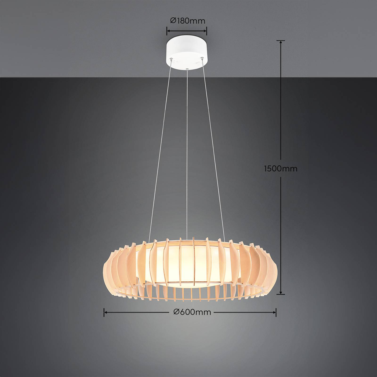 Reality Leuchten Závěsná lampa Monte LED, Ø 60 cm, světlé dřevo, CCT, Obývací pokoj / jídelna, Dřevo, plast, 40W