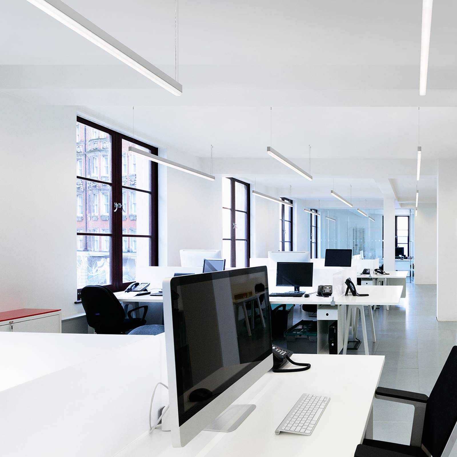 Ribag Metron LED stropní svítidlo 150cm šw hliník stmívatelné, Pracovna / kancelář, Extrudovaný hliník, plast, 22W, P: 150 cm, L: 3.6 cm, K: 6.5cm