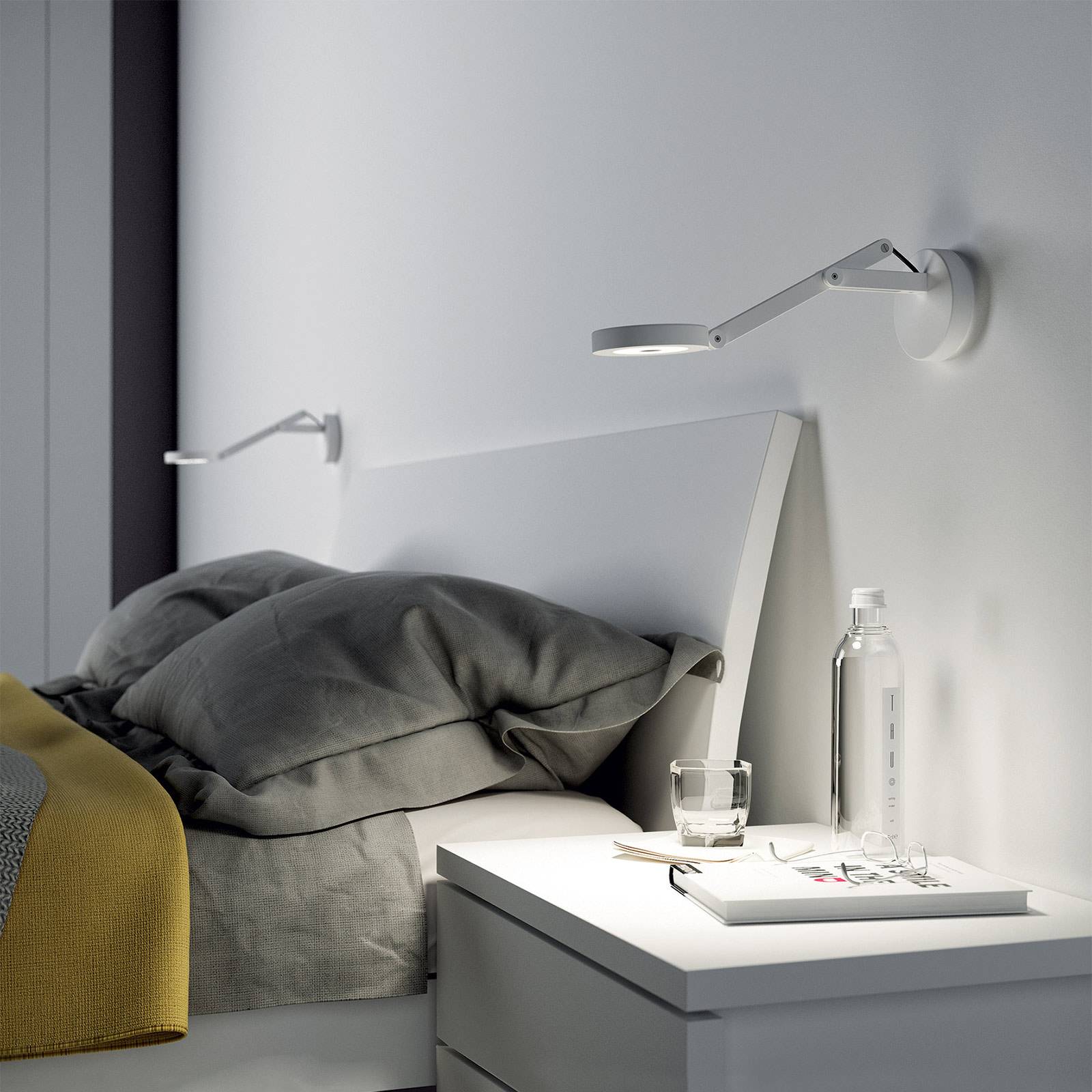 Rotaliana Tobu W1 nástěnné svítidlo, 3000K, 30°, bílé, Obývací pokoj / jídelna, Ocel, hliník, 40W, L: 21.4 cm, K: 40cm