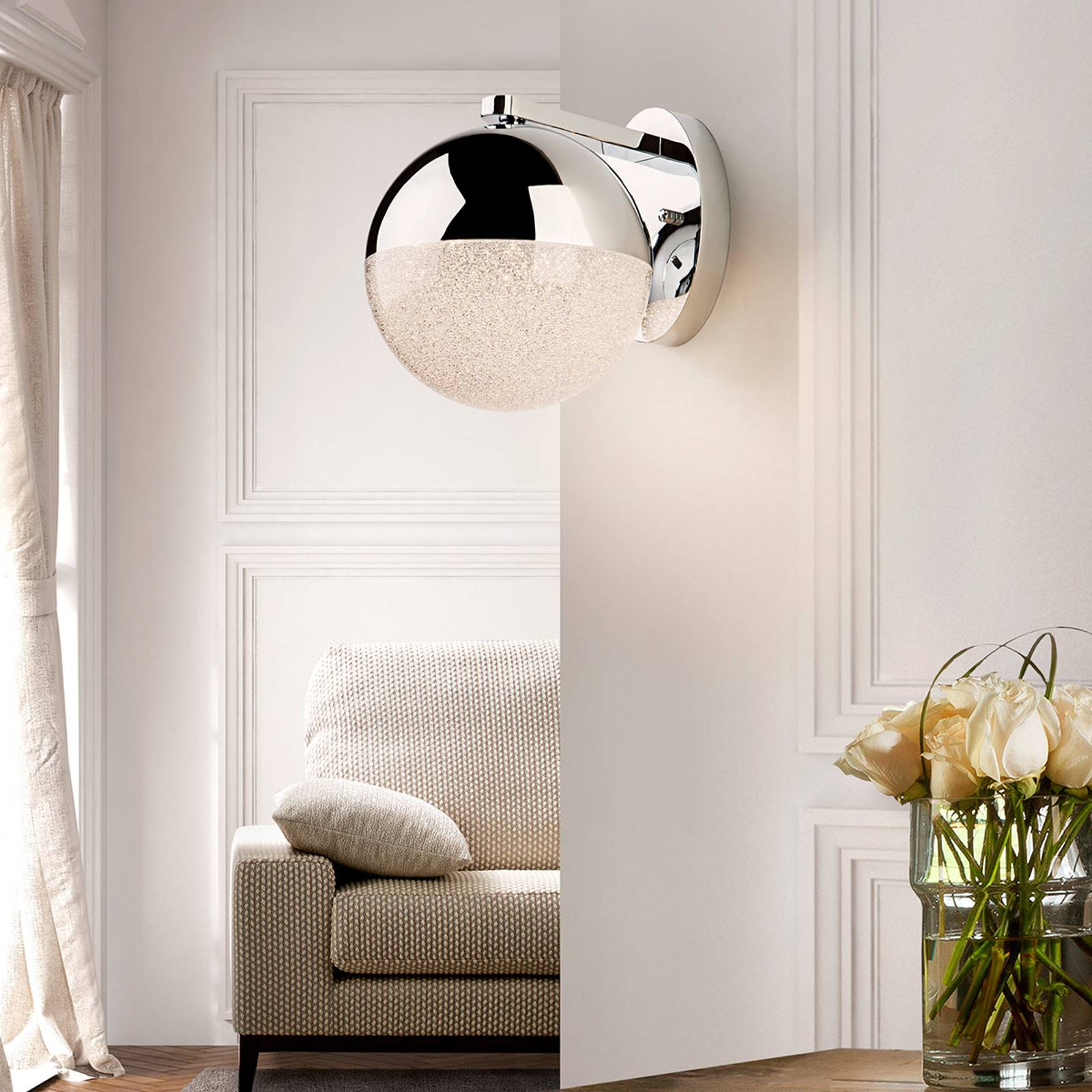 Schuller Valencia LED nástěnné světlo Sphere, chrom, Obývací pokoj / jídelna, kov, polykarbonát, 9.6W, Energetická třída: G, L: 20 cm, K: 24cm