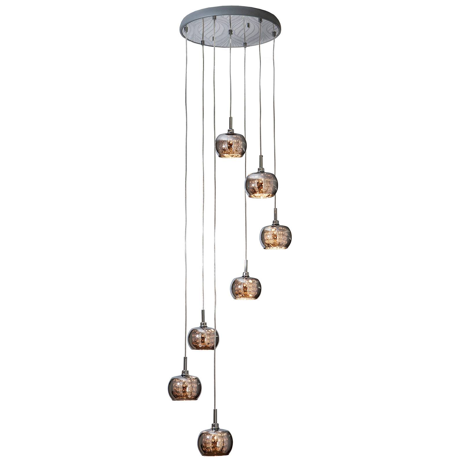 Schuller Valencia Závěsné svítidlo Arian LED s krystaly, sedm světelných zdrojů, Obývací pokoj / jídelna, Sklo, křišťál, ocel, G9, 6W