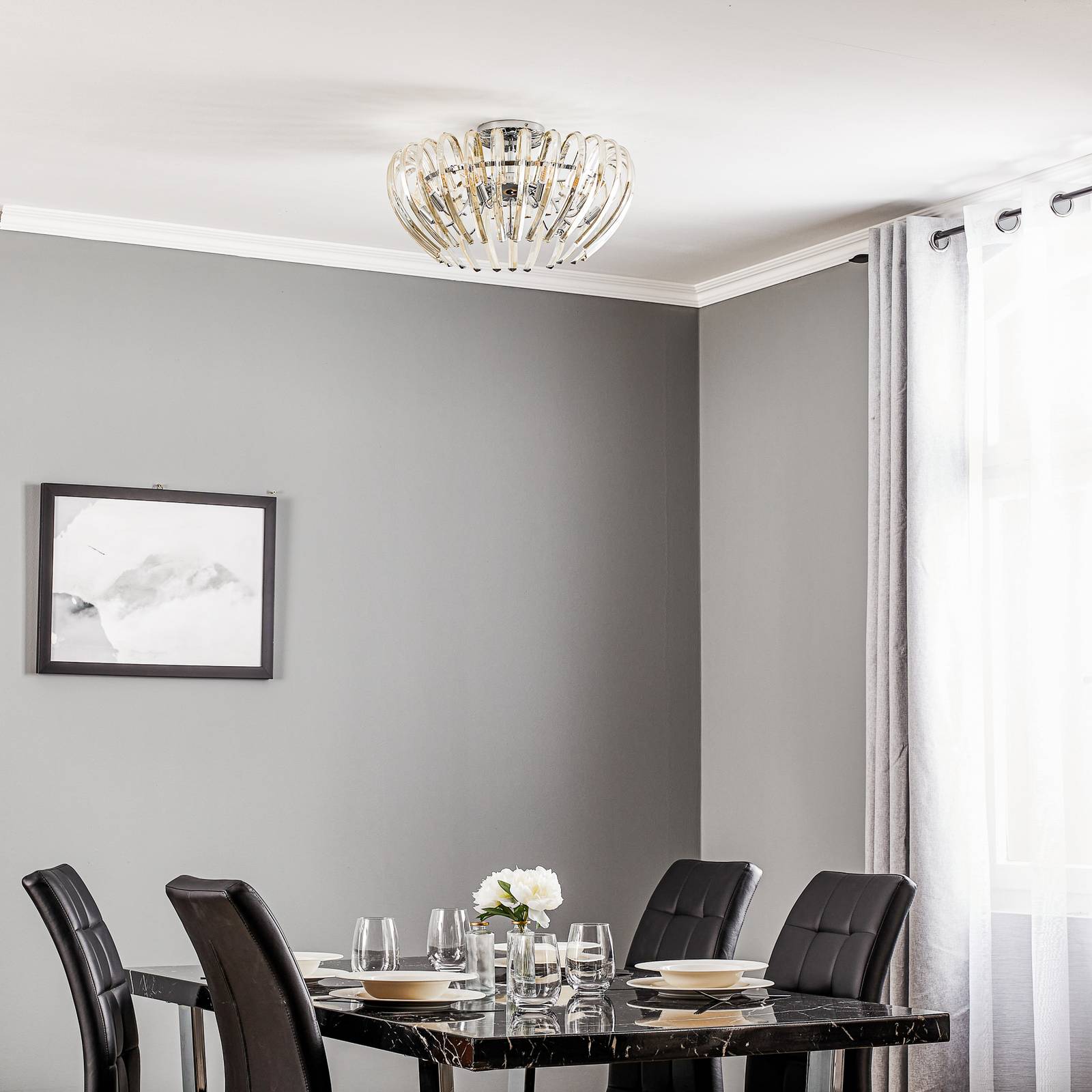 Schuller Valencia Stropní světlo Ariadna křišťál krémová, Obývací pokoj / jídelna, kov, křišťál, G9, 6W, K: 27cm
