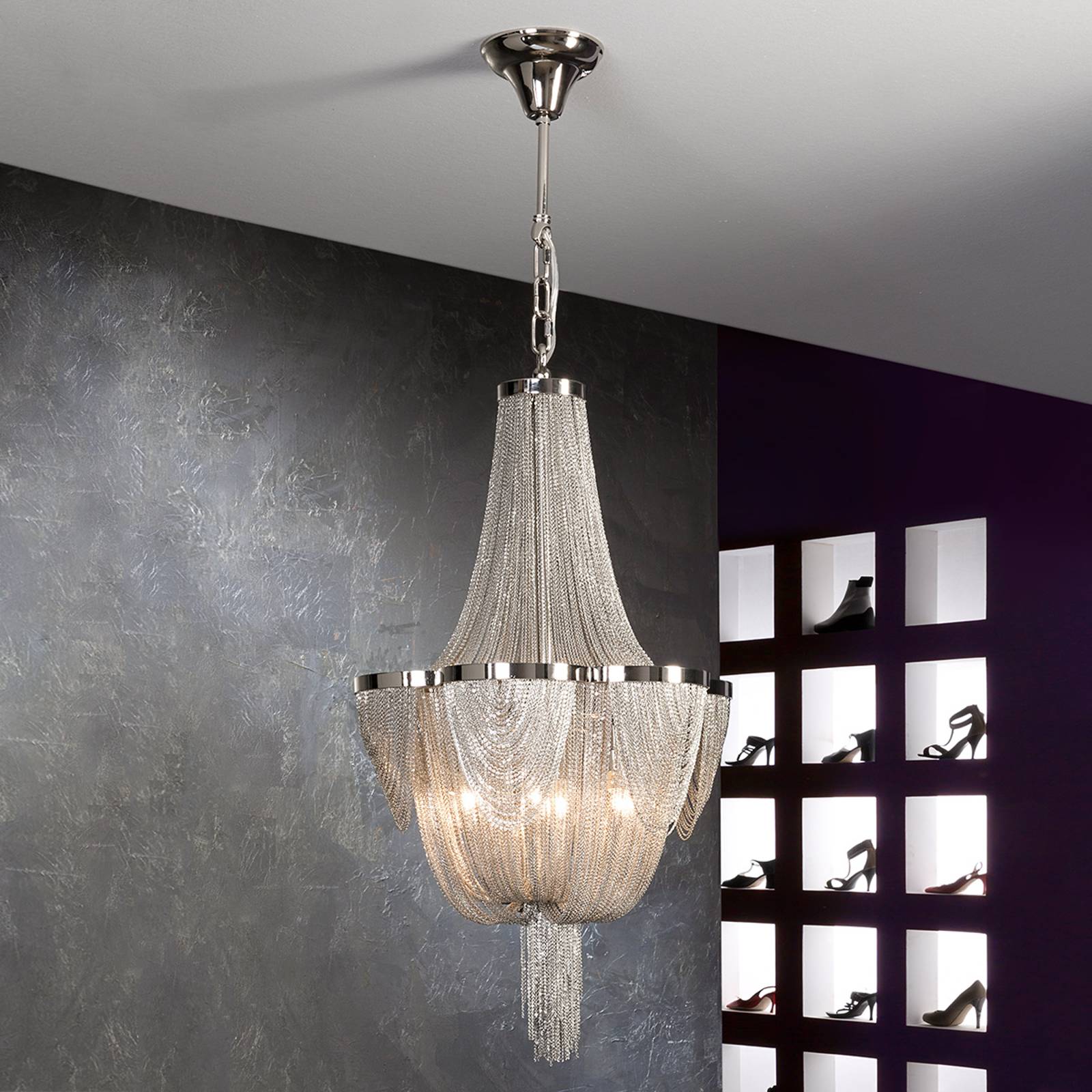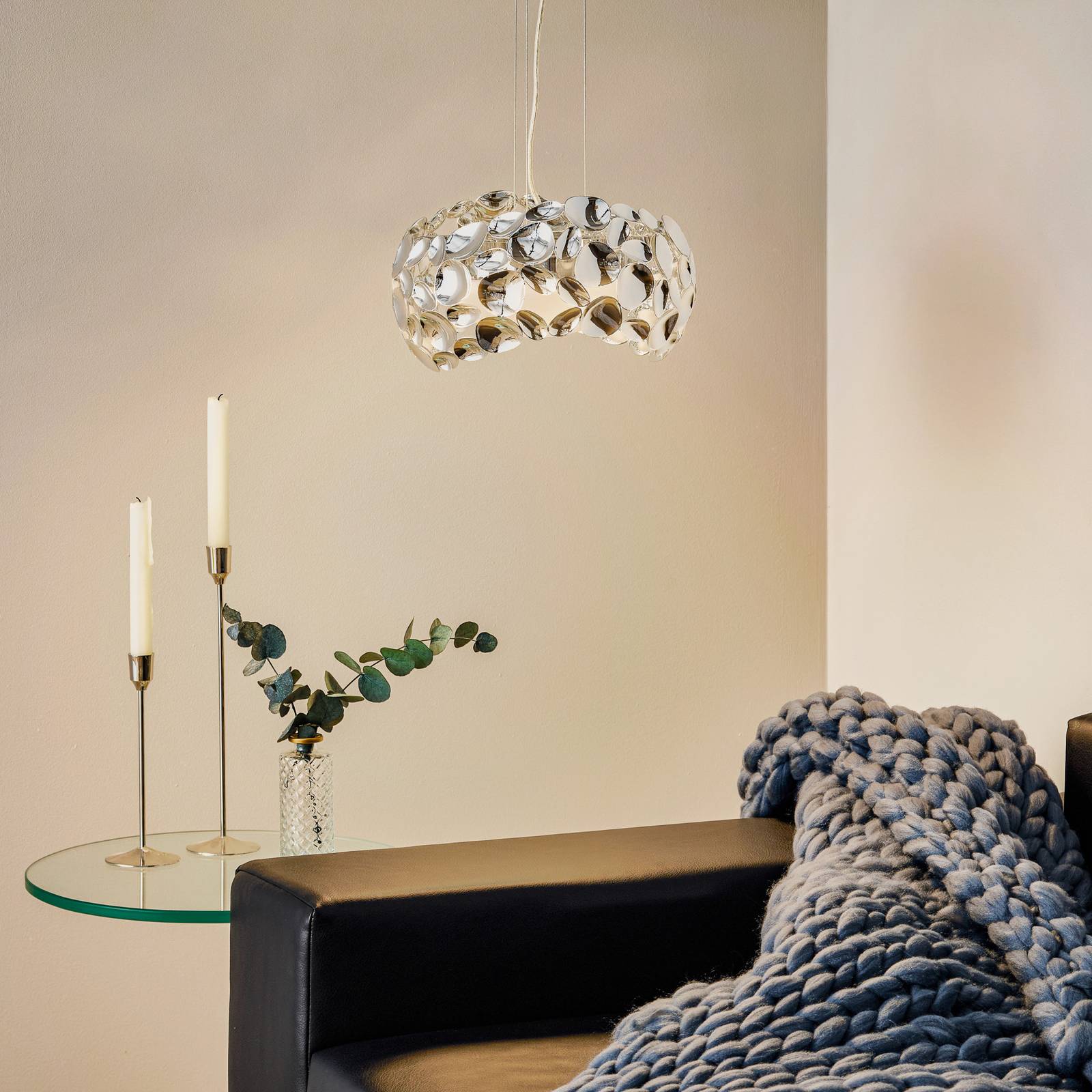 Schuller Valencia LED závěsné světlo Narisa, Ø 32 cm, chrom, Obývací pokoj / jídelna, kov, akryl, G9, 6W, K: 18cm