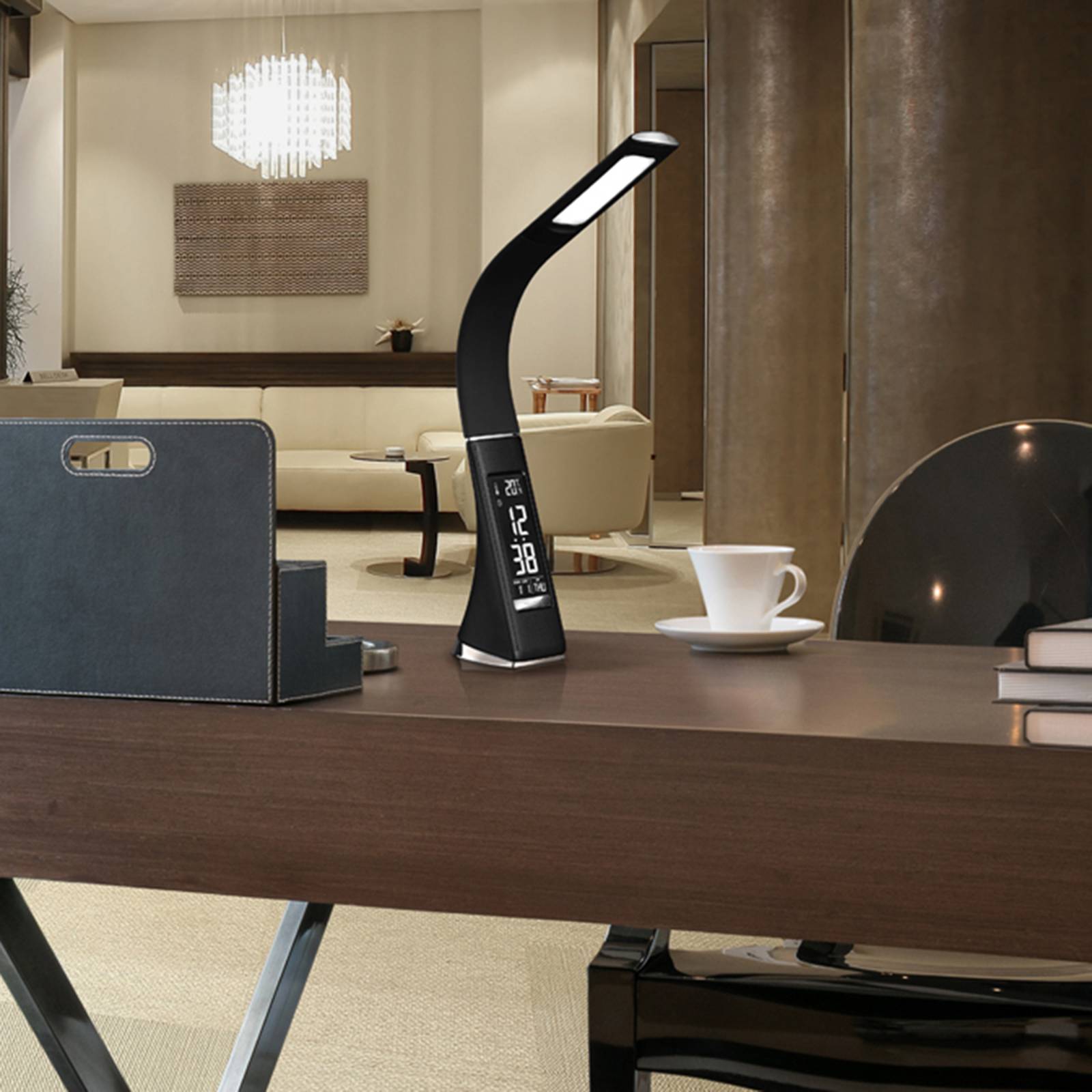 Schuller Valencia Stolní lampa LED Alive s budíkem, černá, Ložnice, ABS, guma, 5W, Energetická třída: G, L: 7 cm, K: 45cm