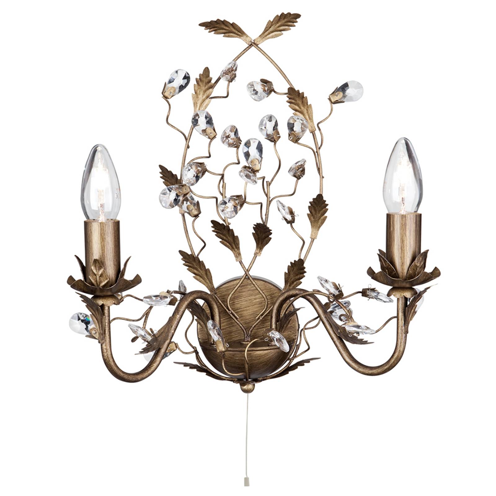 Searchlight Nástěnné světlo Almandite, florentský styl hnědá, Obývací pokoj / jídelna, kov, křišťál, E14, 60W, L: 37 cm, K: 40cm