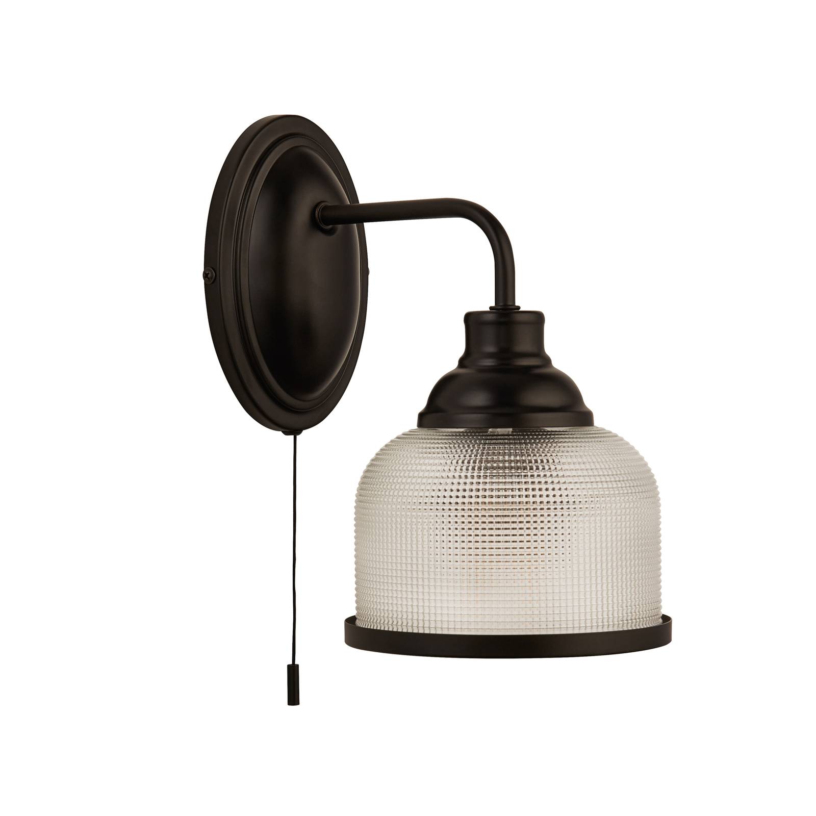 Searchlight Nástěnné světlo Bistro s tahovým vypínačem, černá, Obývací pokoj / jídelna, ocel, sklo, E27, 40W, L: 15 cm, K: 24.5cm