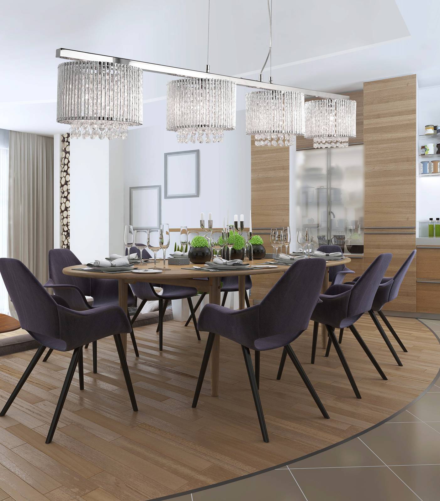 Searchlight Závěsné světlo Elise, čtyři zdroje, nosník, Obývací pokoj / jídelna, ocel, hliník, sklo, G9, 33W, P: 118 cm, L: 19 cm