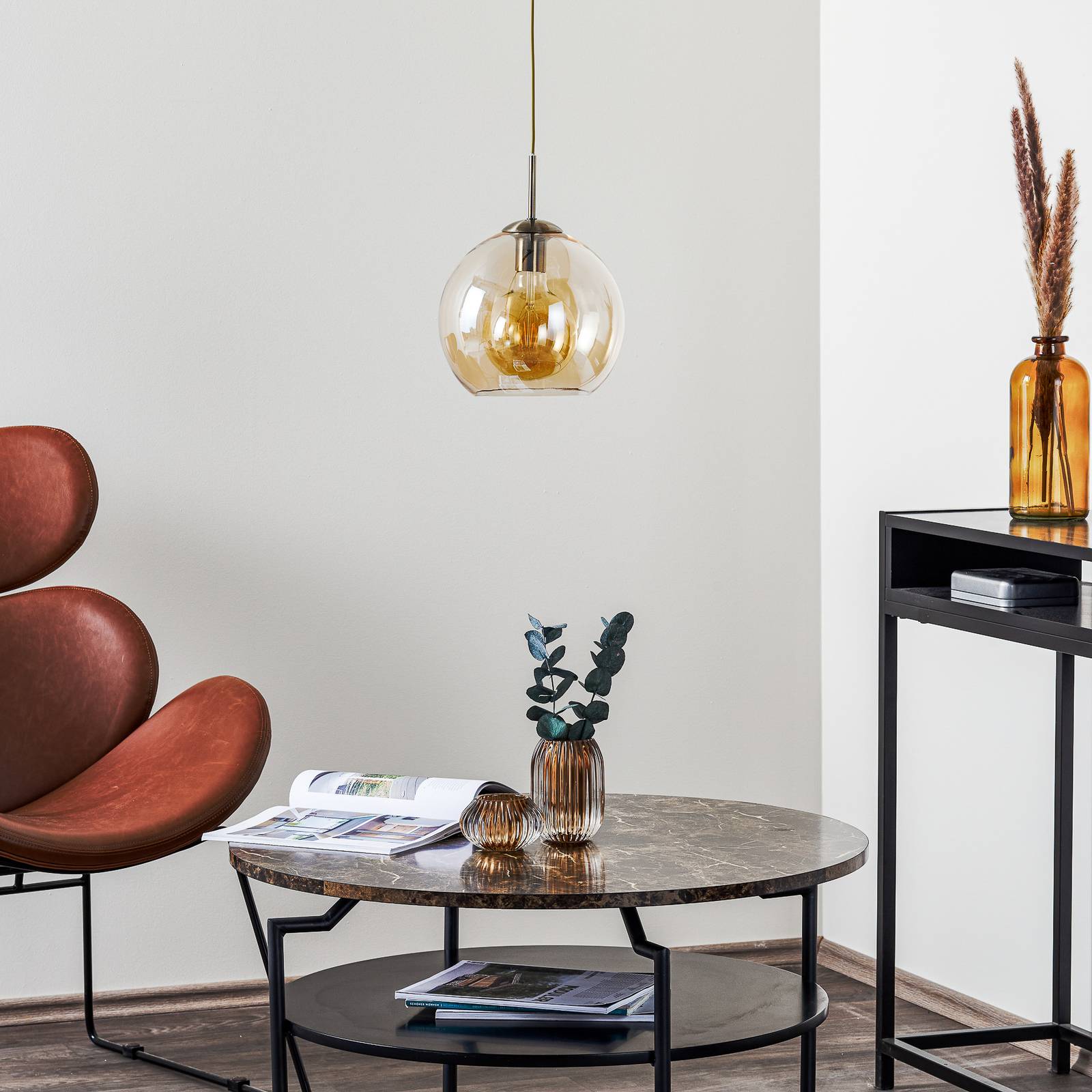 Searchlight Závěsné světlo Balls, jantar. skleněnou koulí 25cm, Obývací pokoj / jídelna, kov, sklo, E27, 10W