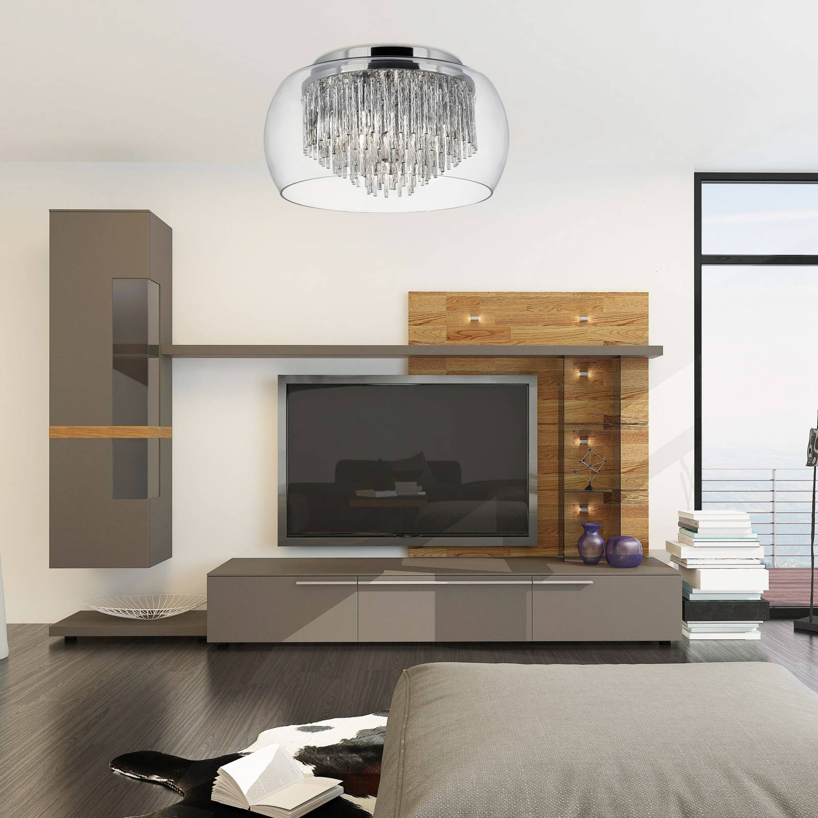 Searchlight Rollo LED stropní svítidlo, čtyři zdroje, chrom, Obývací pokoj / jídelna, ocel, sklo, 4W, Energetická třída: F, P: 77 cm, L: 9 cm, K: 13cm