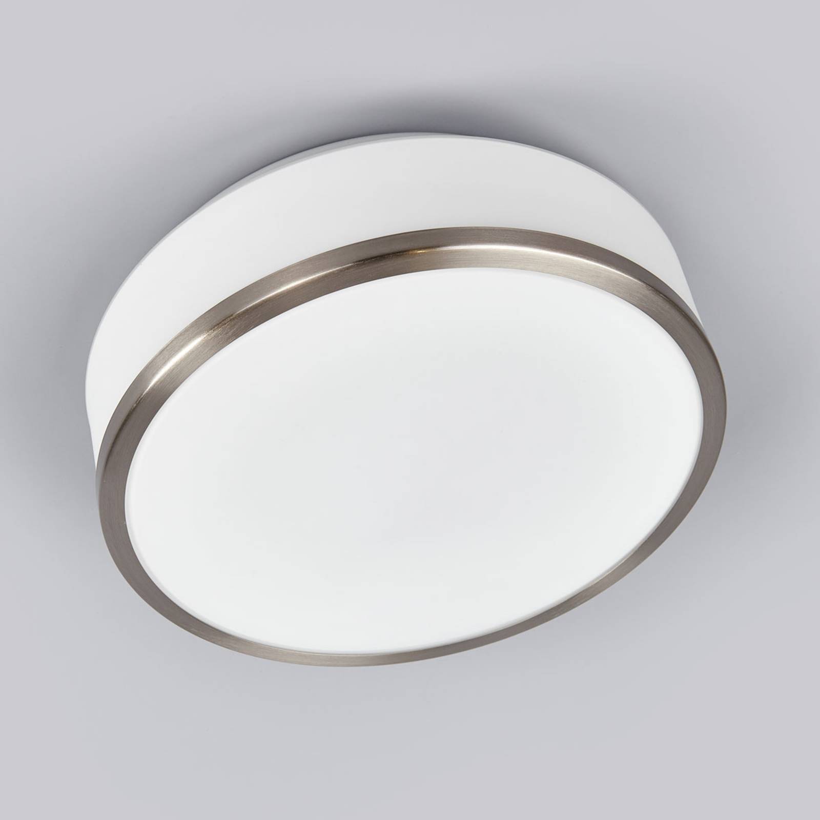 Searchlight Stropní svítidlo Flush IP44, Ø 28cm, stříbrné, Koupelna, opálové sklo, kov, E27, 60W, K: 10cm