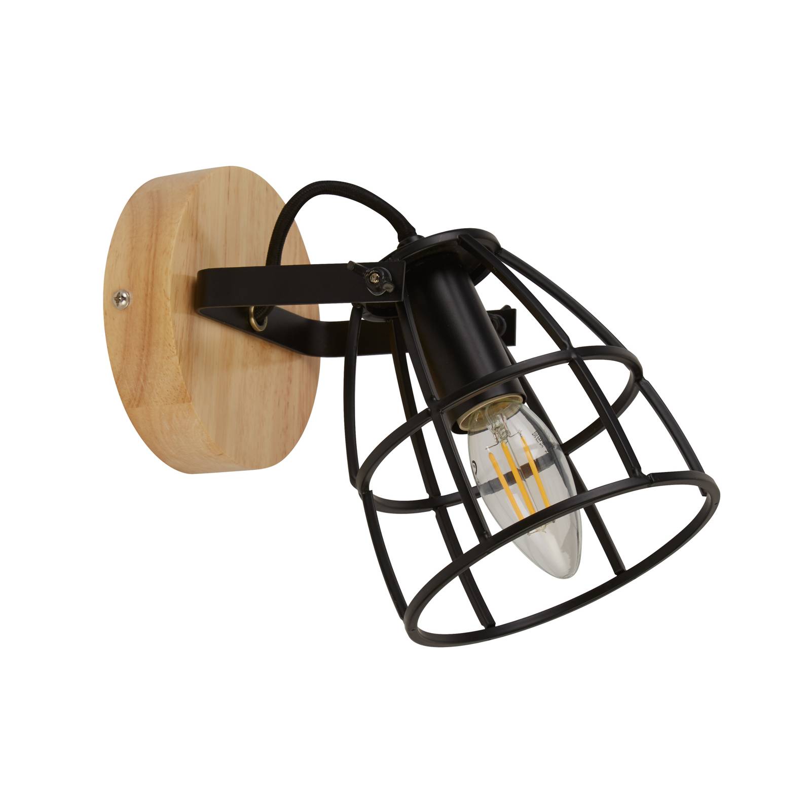 Searchlight Nástěnné světlo Cage II s mřížkovým stínidlem, Obývací pokoj / jídelna, dřevo, ocel, E14, 40W, L: 12.5 cm, K: 17cm
