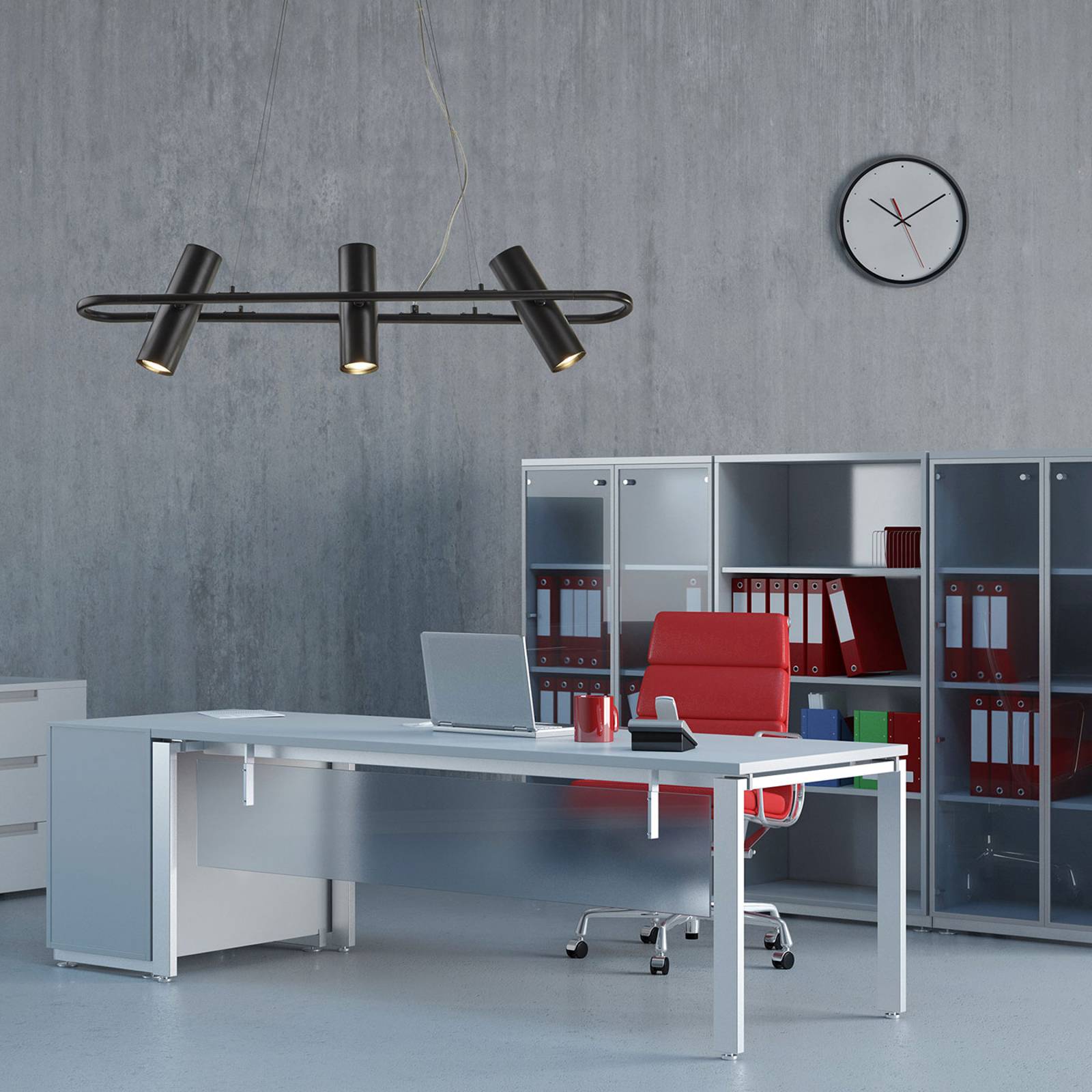 Searchlight Černý závěsné světlo Telescope, 3 zdroje, Obývací pokoj / jídelna, kov, GU10, 35W, P: 85 cm, L: 11 cm, K: 19cm