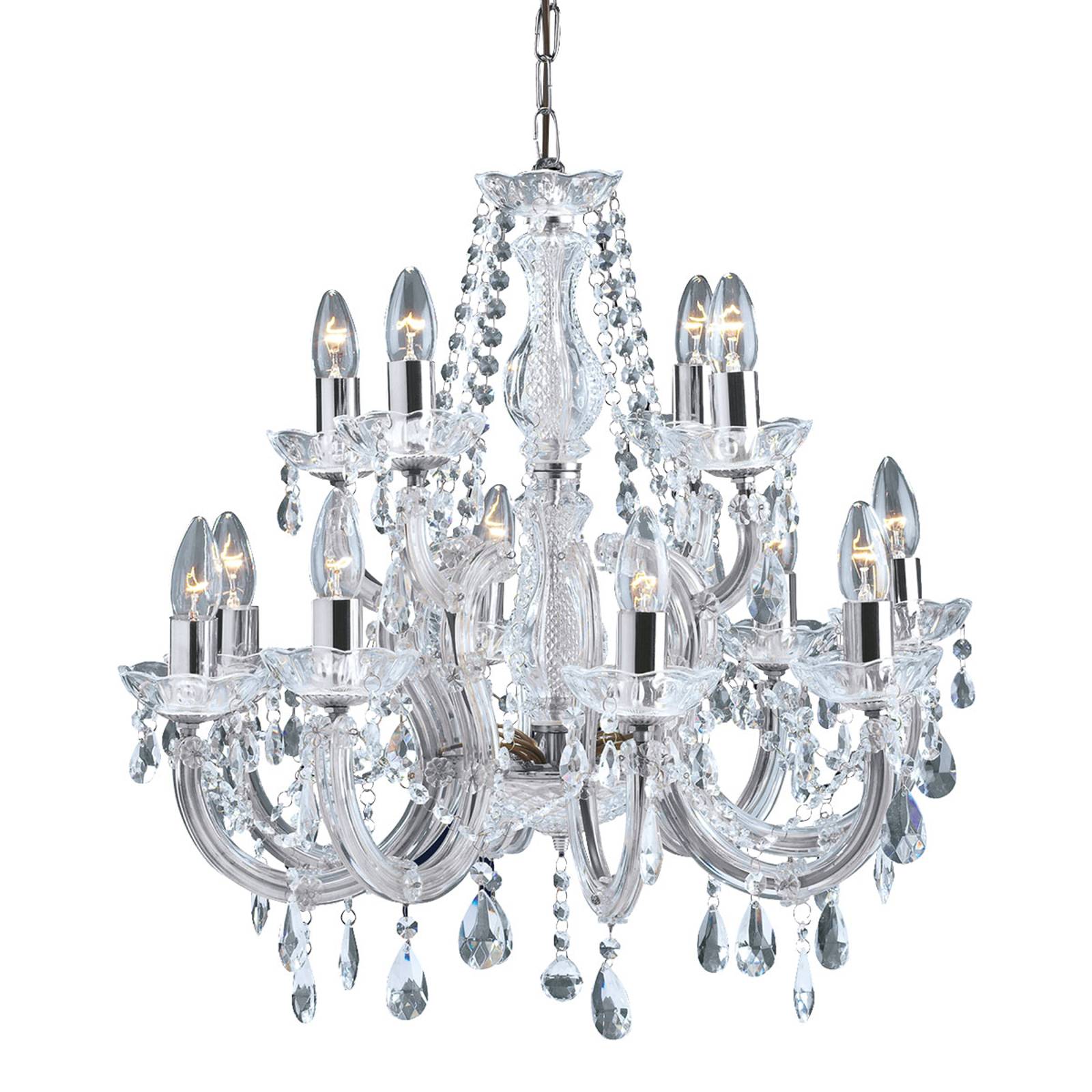 Searchlight Lustr Marie Therese, chrom, na 12 žárovek, Obývací pokoj / jídelna, kov, akrylátové sklo, skleněný křišťál, E14, 40W, K: 60cm