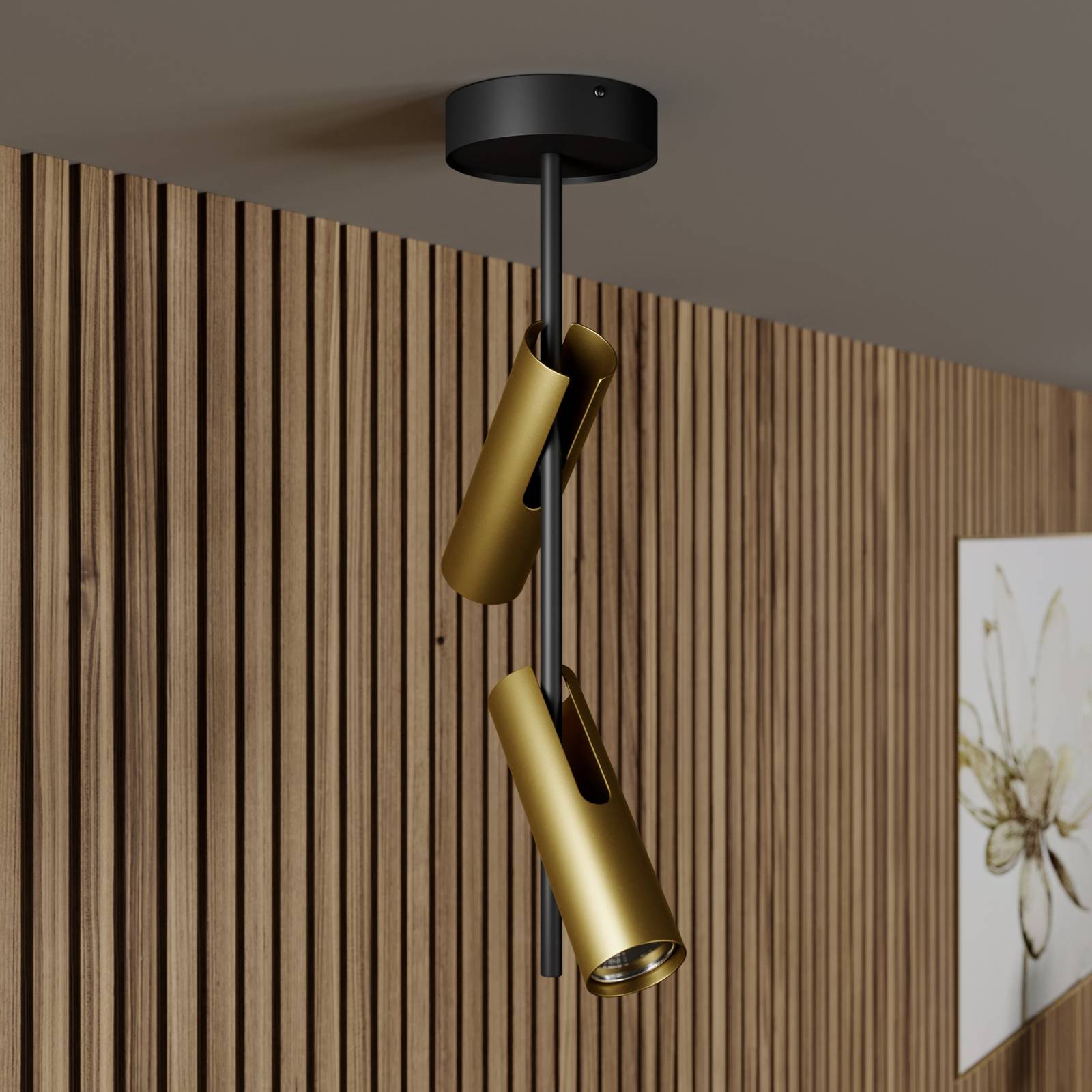 SIGMA Stropní bodové svítidlo Leda 2, dvoubarevné, černo-zlaté, Obývací pokoj / jídelna, Práškově lakovaná ocel, GU10, 25W, P: 28 cm, L: 13.5 cm, K: 55cm