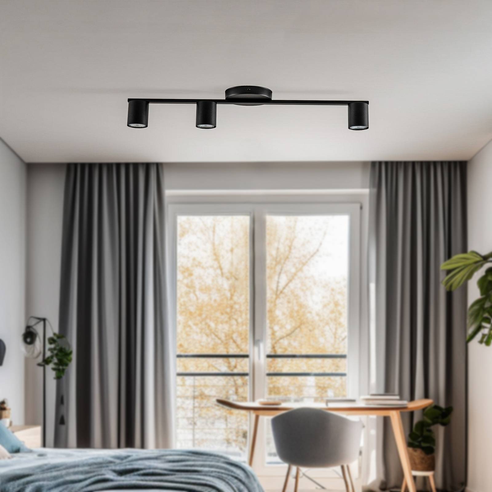 SIGMA Stropní bodové světlo Sky, 3 zdroje, černá, Obývací pokoj / jídelna, ocel, GU10, P: 70 cm, L: 14 cm, K: 11cm