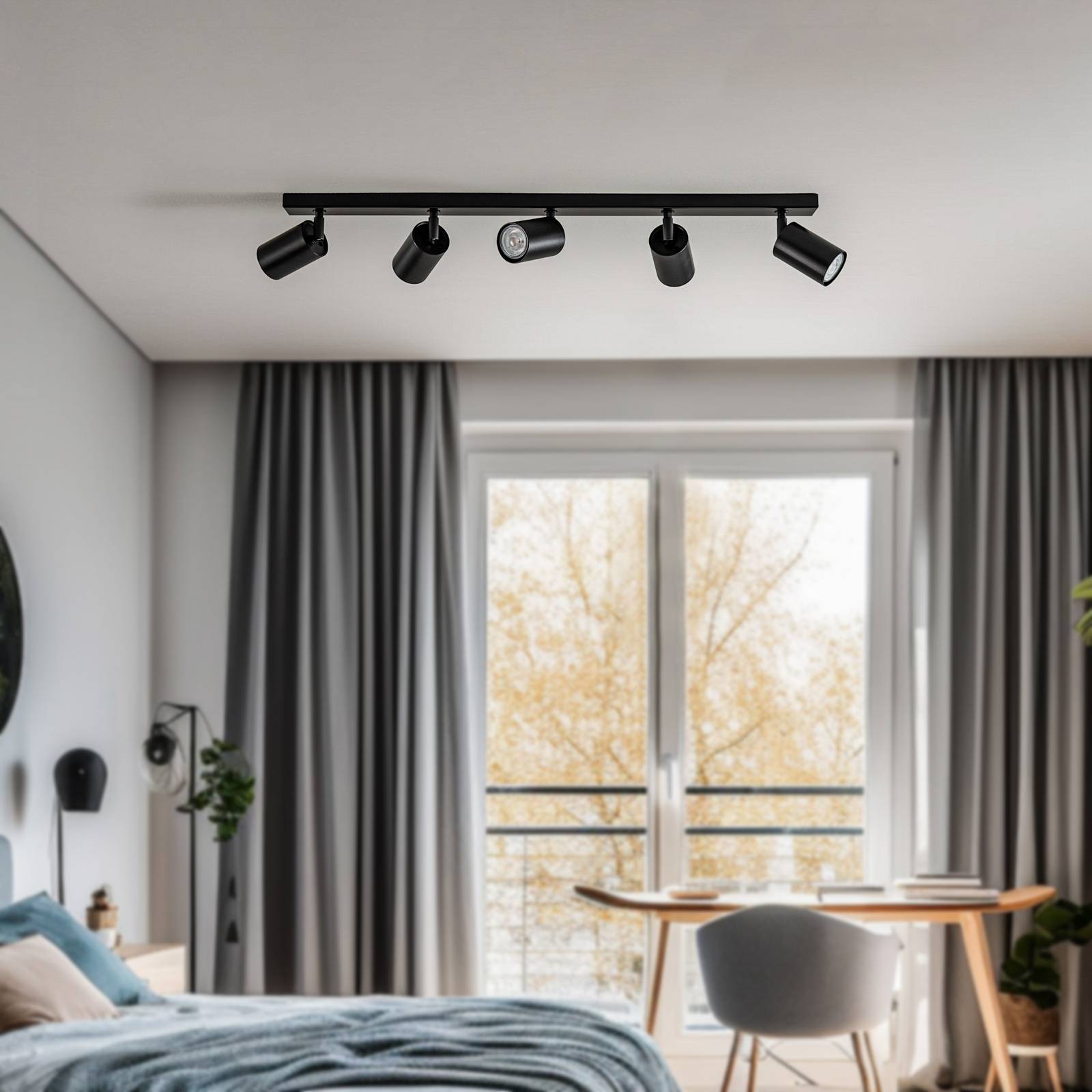 SIGMA Stropní bodové světlo Zoom, 5 zdrojů, černá, Obývací pokoj / jídelna, ocel, GU10, P: 80 cm, L: 6 cm, K: 16cm