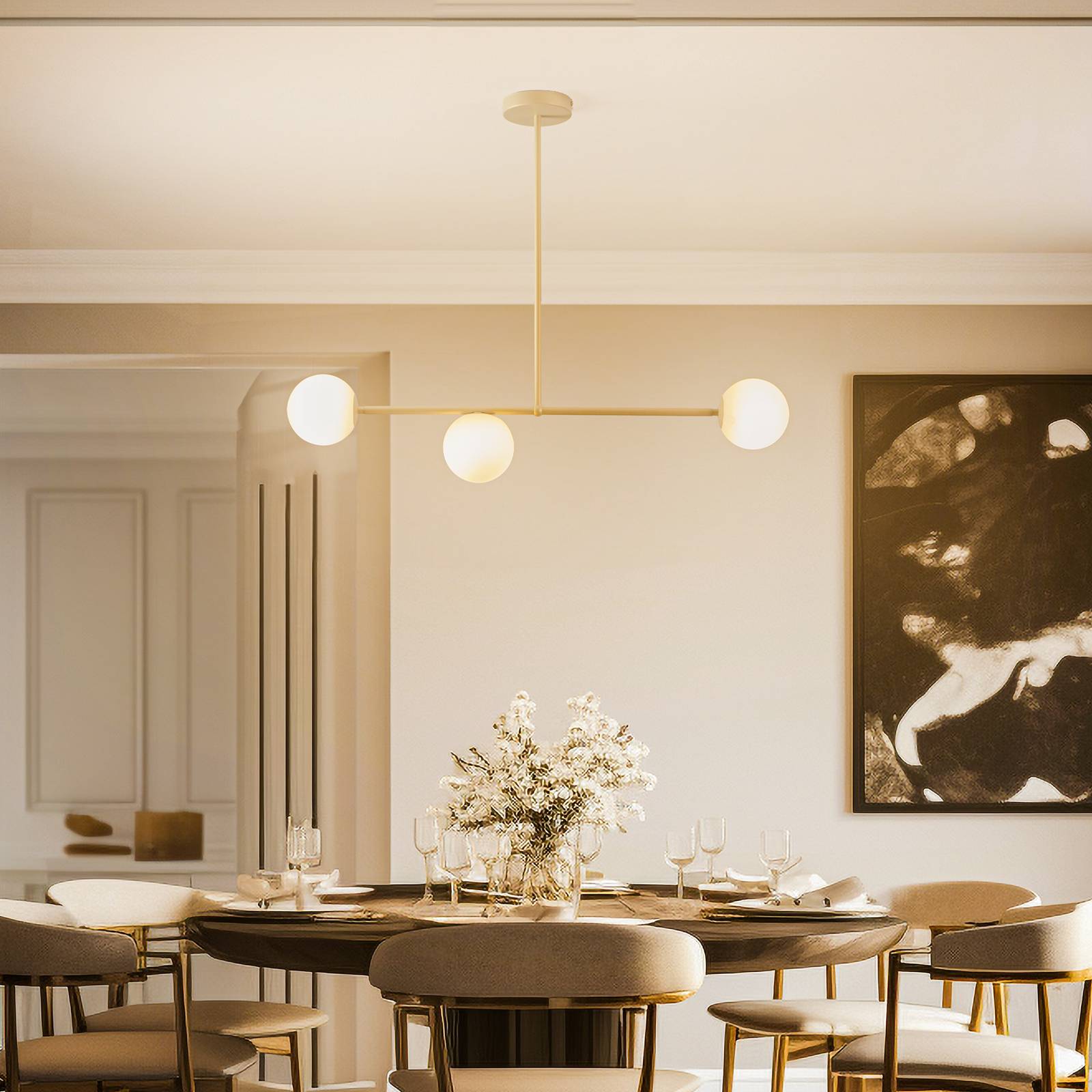SIGMA Stropní svítidlo Gama, 3 zdroje, zlatá, Obývací pokoj / jídelna, ocel, sklo, G9, 12W, P: 60 cm, L: 12 cm, K: 86cm