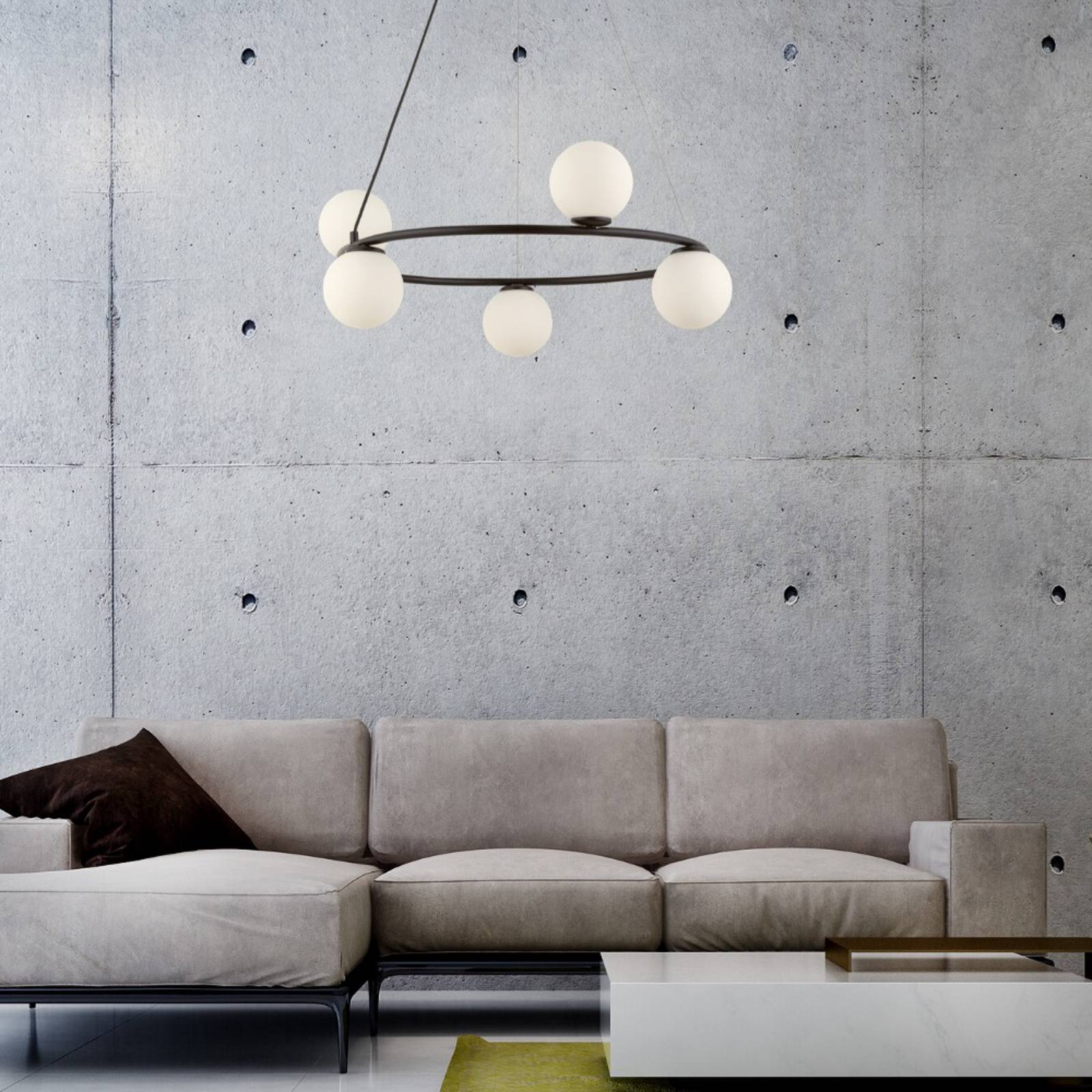 SIGMA Závěsné světlo Gama 5 zdrojů, černá, Obývací pokoj / jídelna, ocel, sklo, G9, 12W